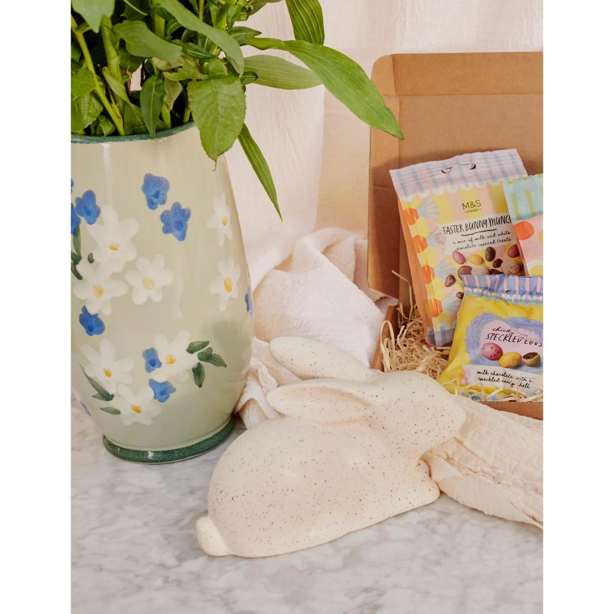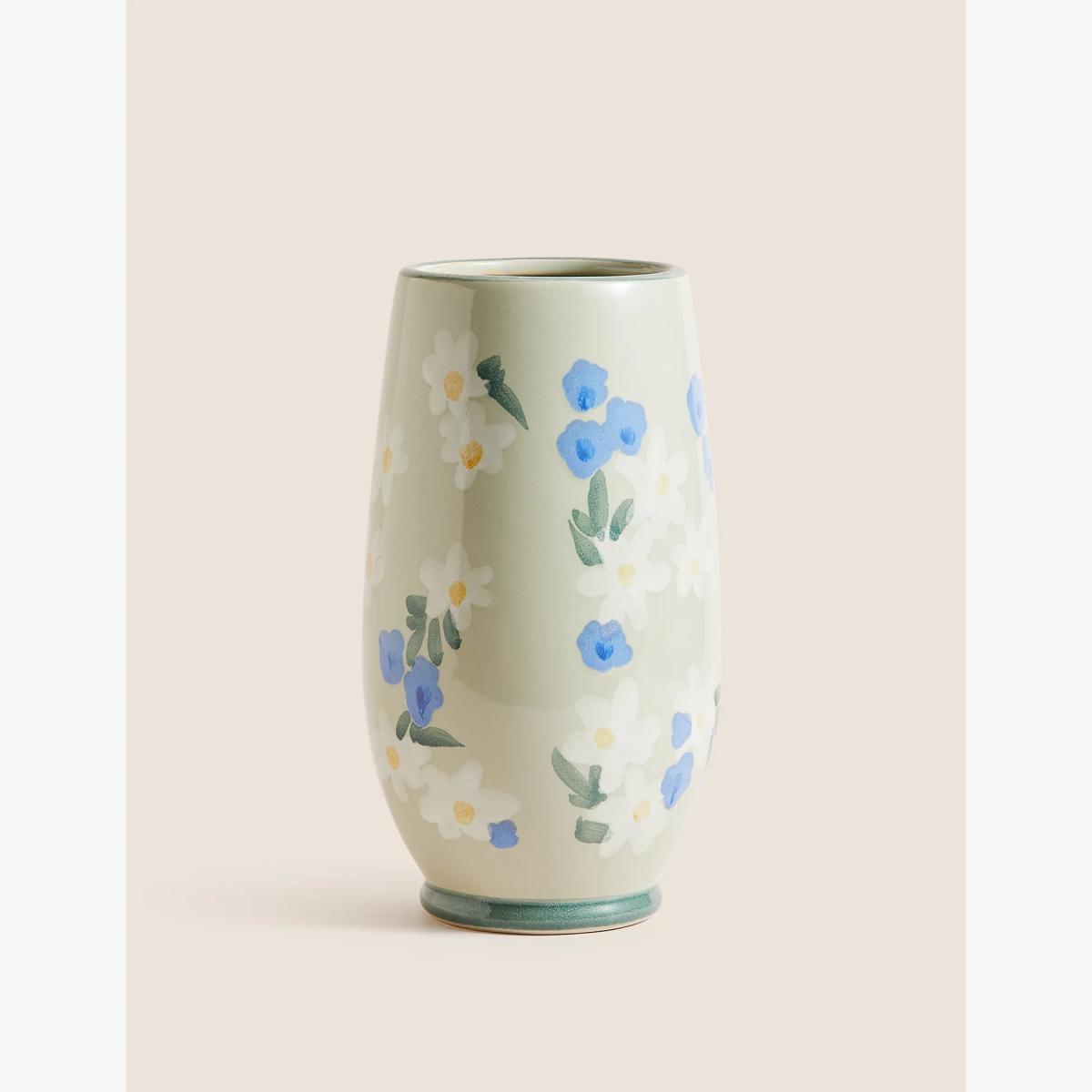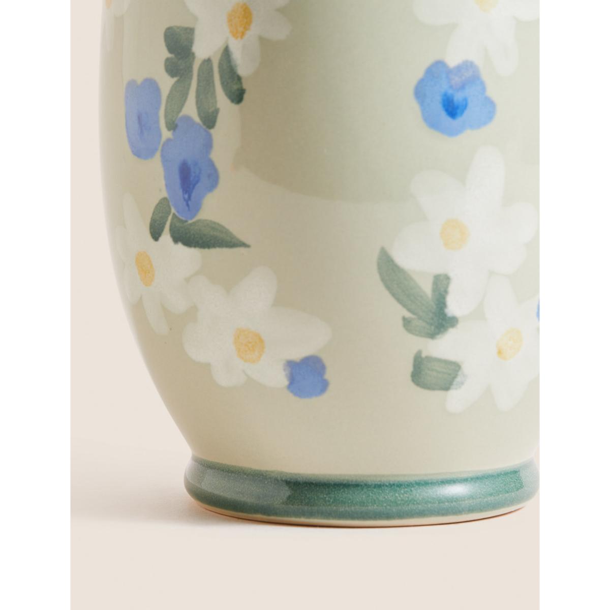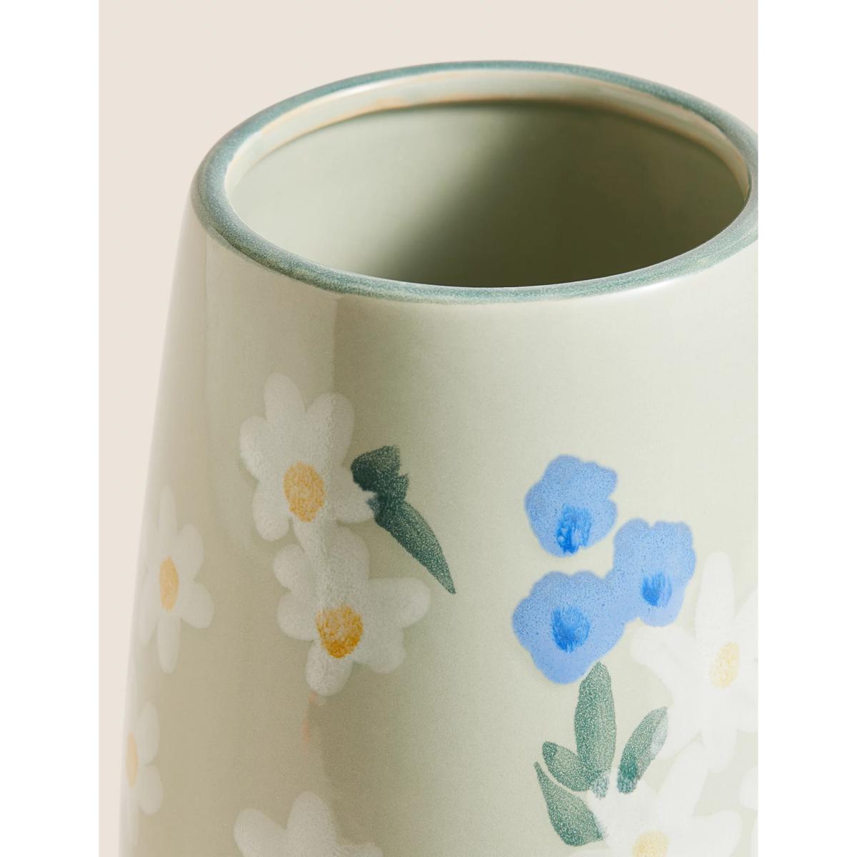 M&S Floral Painted Glaze Ceramic Vase - Grey/White, Grey/White