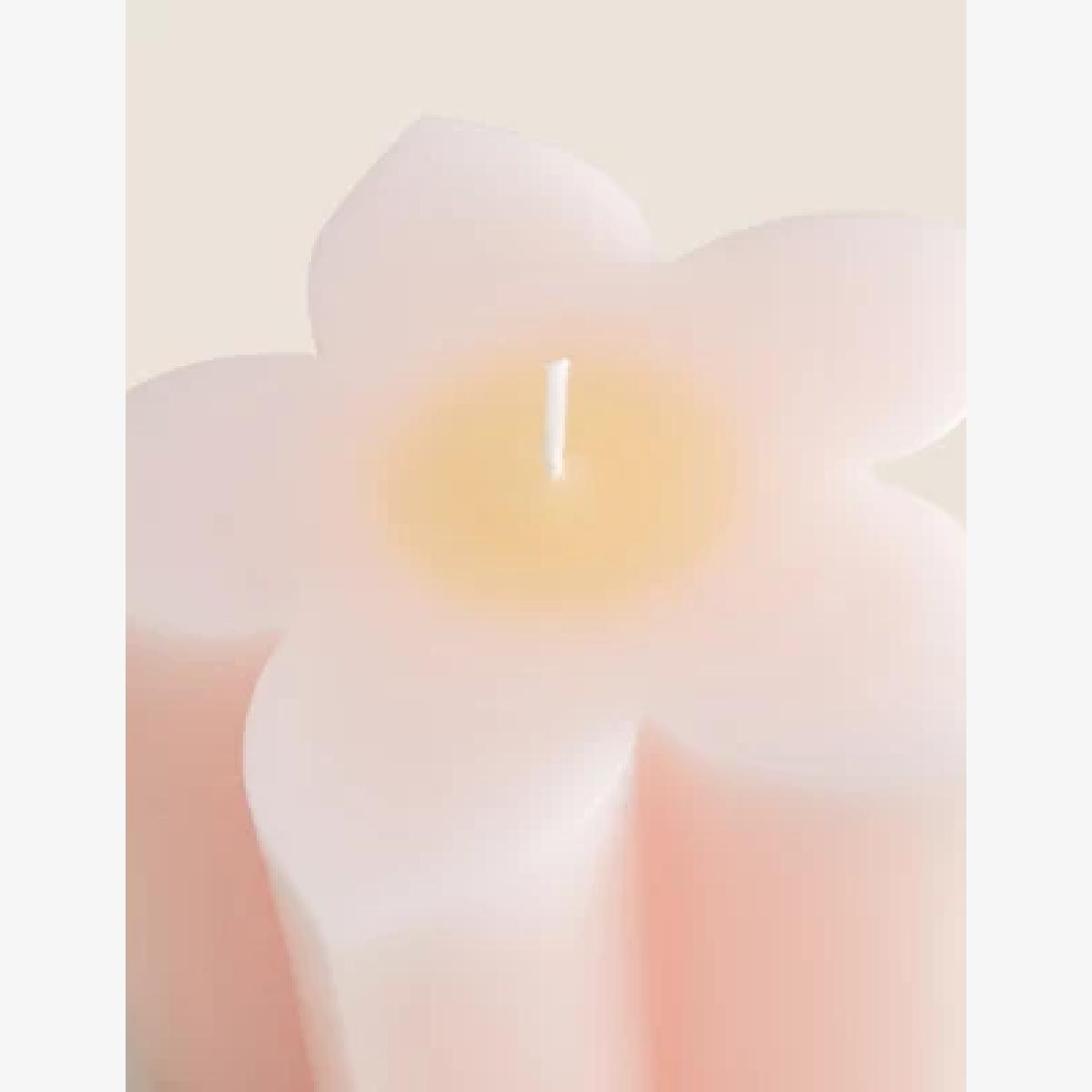 M&S Flower Unscented Pillar Candle - Pink Mix, Pink Mix