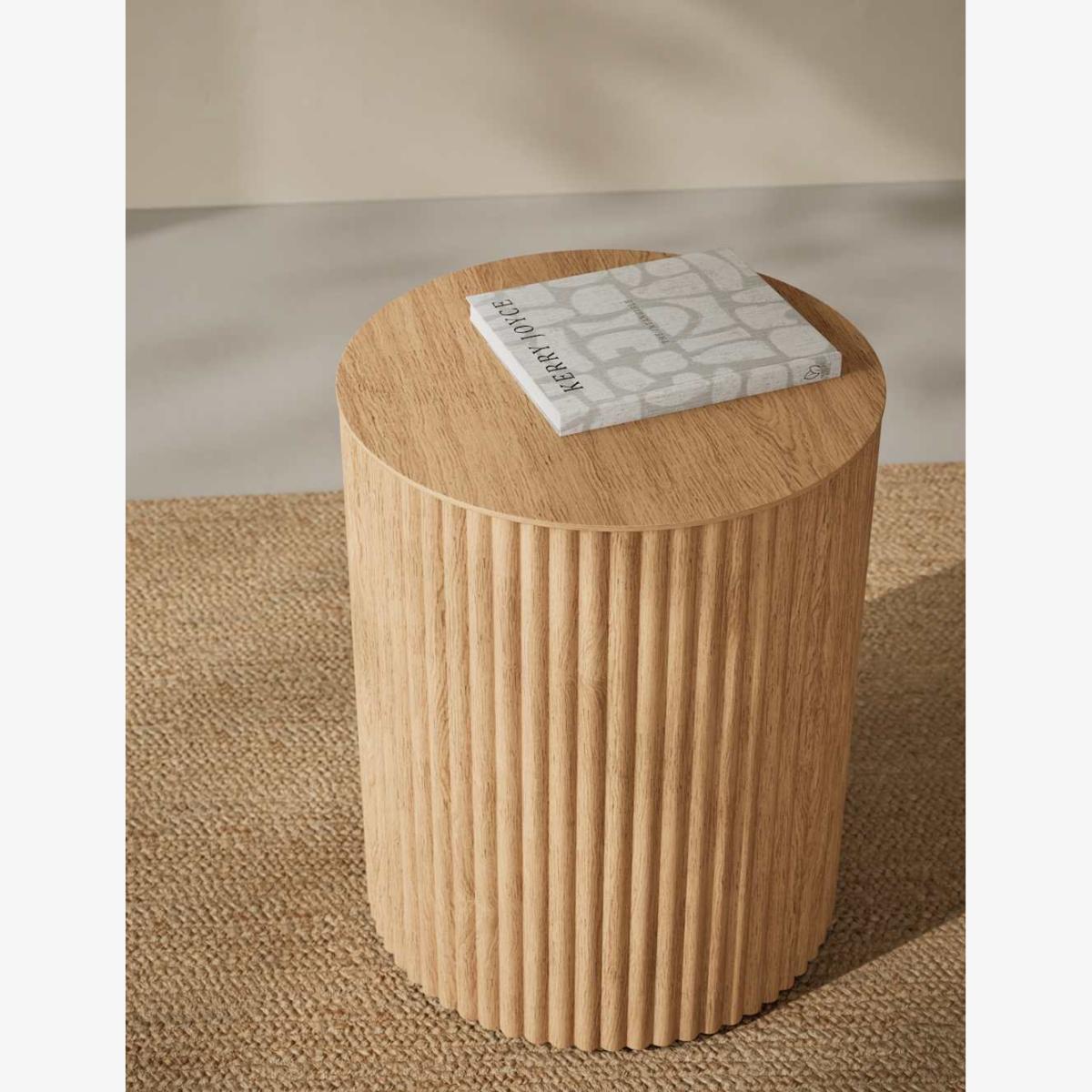 The Fluted Side Table is a sculptural accent piece that blends texture with timeless design. Its elegant drum profile features solid wood flutes that add depth and character, while the oak veneer top offers a smooth, natural finish. Other items in the Fluted range are also available. We’re so confident our furniture is built to last, our industry-leading guarantee covers any manufacturing failure on all furniture. That’s our promise, and why our furniture comes with a 10-year guarantee that you can trust. Excludes: outdoor furniture and any issues that are a result of normal wear and tear, improper care or accidental damage.