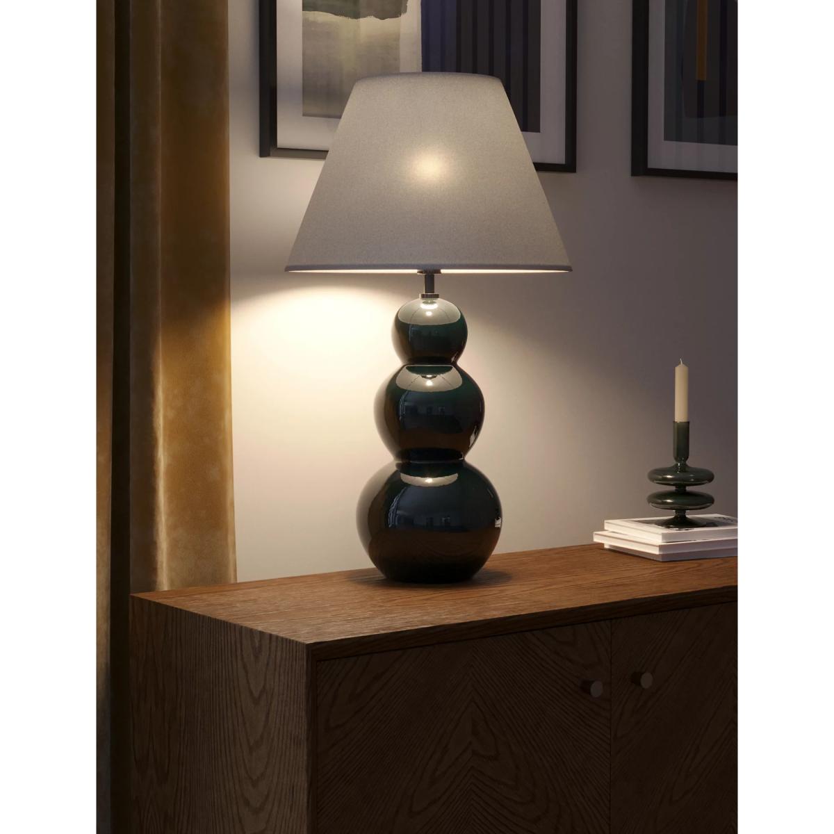 Add a fun, playful touch to your space with the Flynn table lamp. It features a curved ceramic base with a glossy, light-reflecting finish for a modern look. Its classic fabric shade will create a soft glow.