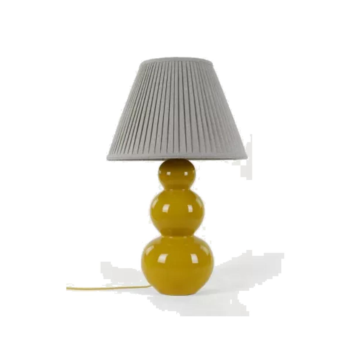 I love how this lamp’s bold ochre and red tones add a lively touch to both neutral and colourful interiors. Its playful, rounded base makes it a versatile statement piece that works well in living rooms or bedrooms, especially when you want to introduce a splash of colour without overwhelming the space. For styling, I’d suggest pairing it with soft, muted furnishings to make the colours pop, or with natural textures like woven baskets or linen cushions to balance its graphic shape. It’s also practical to place it on a side table or console, where both the colour and shape can be appreciated up close. Overall, it’s an architecturally interesting lamp that brings both colour and character to contemporary and eclectic settings alike.