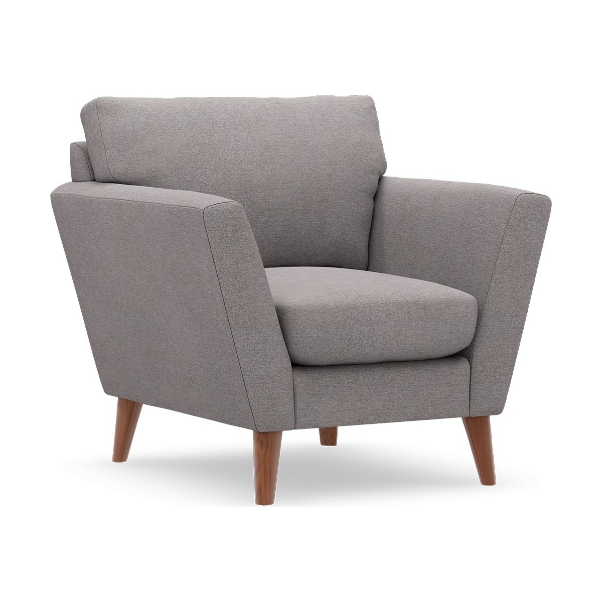 This armchair is a great choice for adding a touch of modern simplicity to a variety of interiors, from contemporary to Scandi-inspired spaces. I love its clean lines and neutral grey fabric, which makes it versatile and easy to style with colourful cushions, throws, or even patterned rugs for a personalised look. It's also quite practical; the slightly tapered wooden legs lift it off the ground, making cleaning underneath straightforward. For styling tips, try pairing it with a cosy side table and a statement lamp to create a inviting reading nook, or mix it with other muted tones and textured textiles for a calm, understated vibe. Its compact size makes it an excellent option for smaller living rooms or cosy corners without sacrificing comfort.