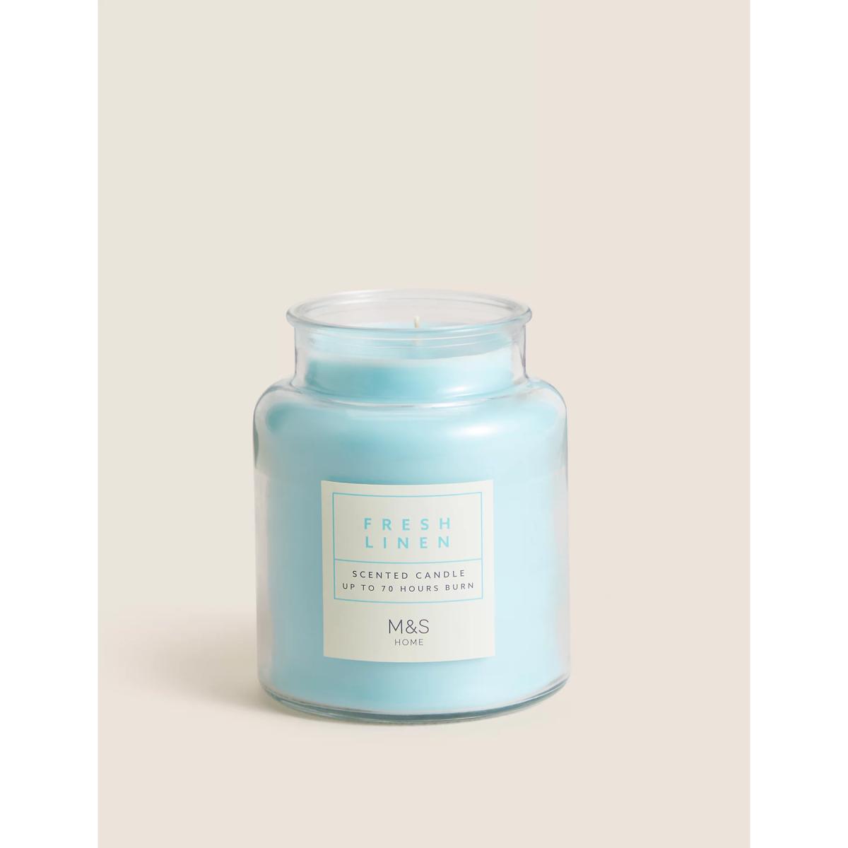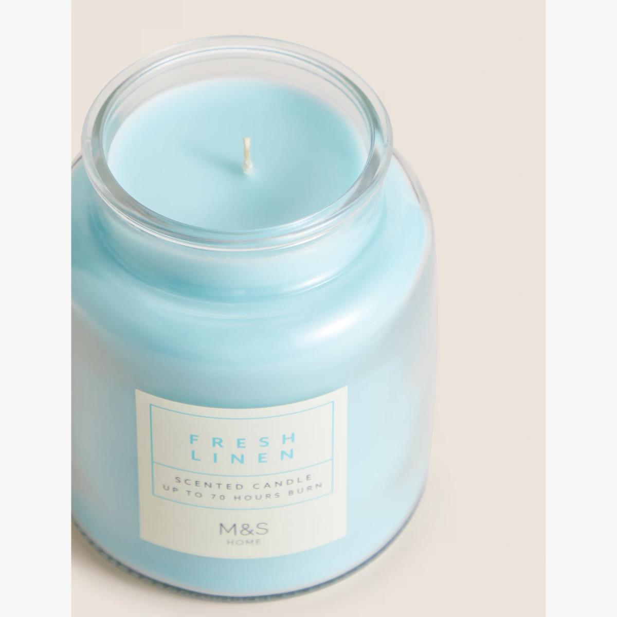 M&S Fresh Linen Jar Candle - Blue, Blue