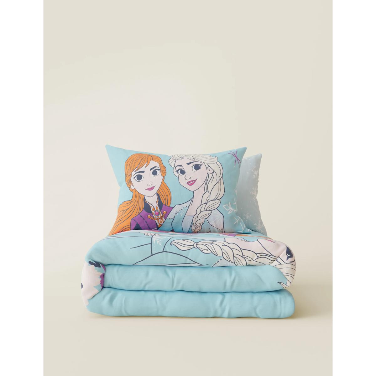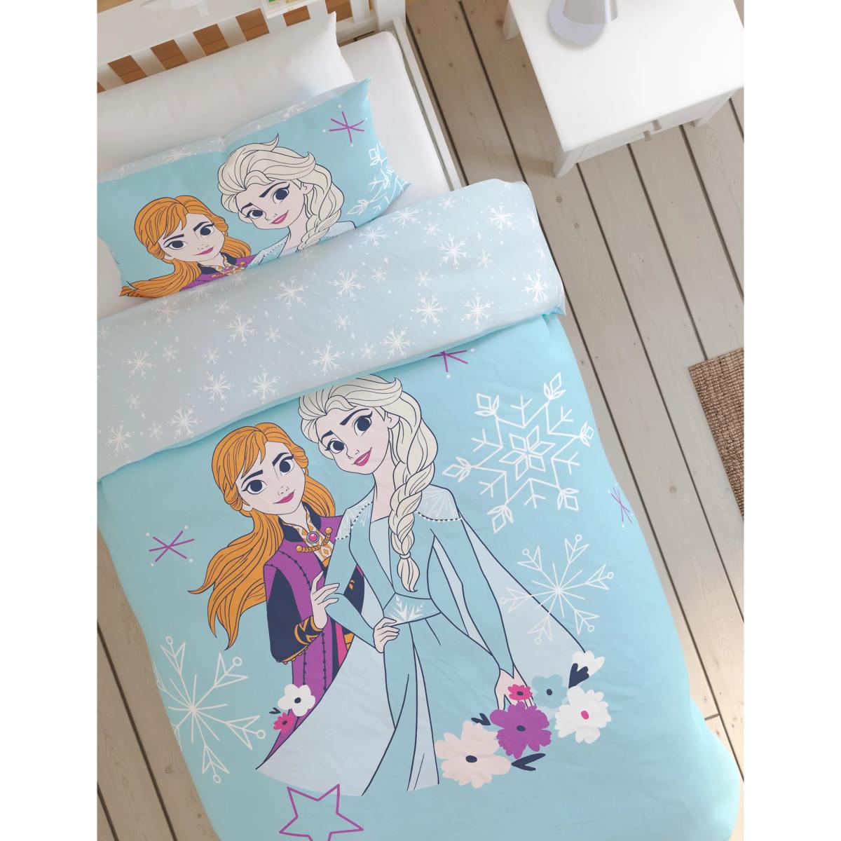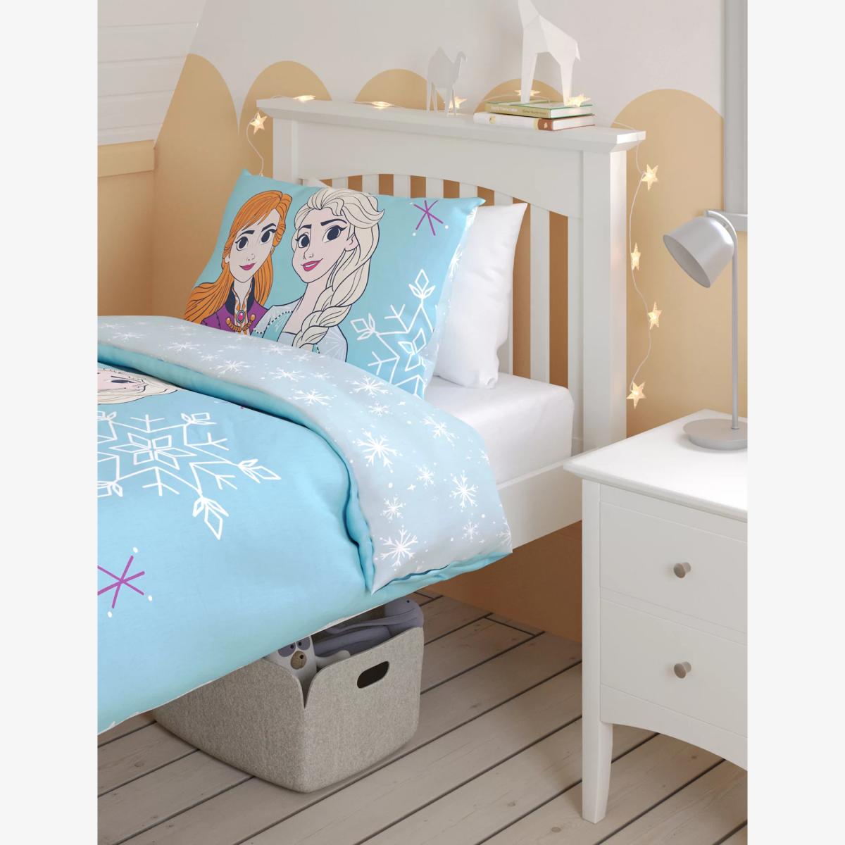 Bring their favourite characters to bedtime with this cotton-blend Frozen™ bedding set. Elsa and Anna decorate the front of the duvet cover and pillowcase, while the reverse features a magical snowflake print. The fabric delivers longer-lasting colours and freshness, thanks to our StayNew™ technology and non-iron finish. It's quick drying too, for easy laundering.