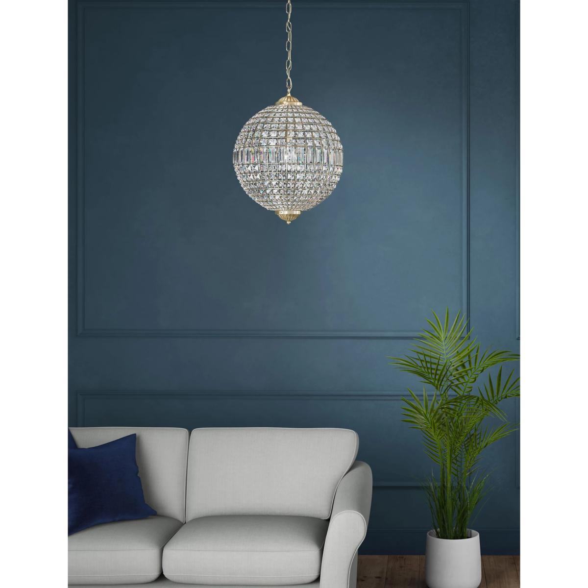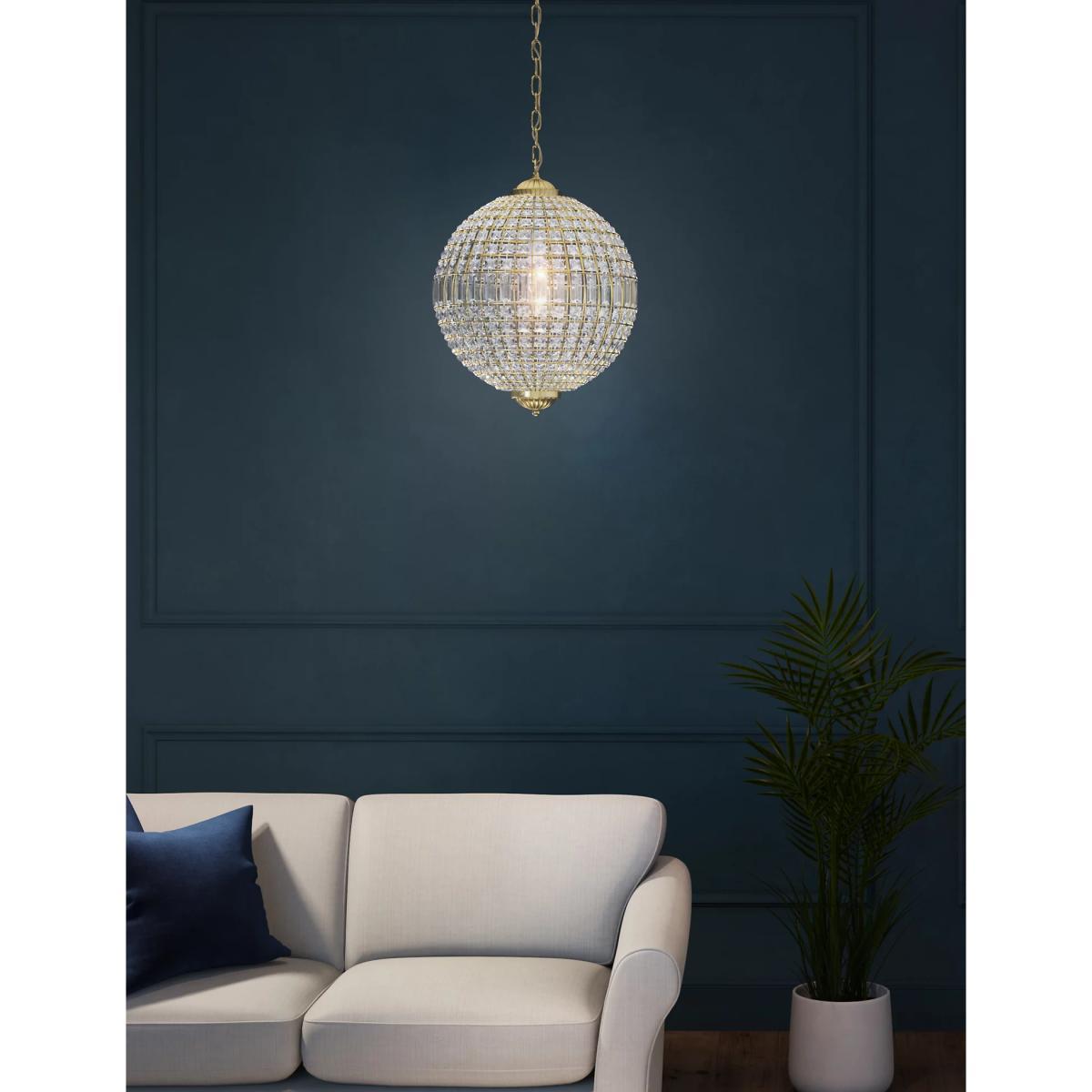 With a reflective ball-shaped gem, our crystal pendant light will add a touch of luxe to any room. The fitting hangs from the ceiling by a classic link chain with gold-tone detailing.