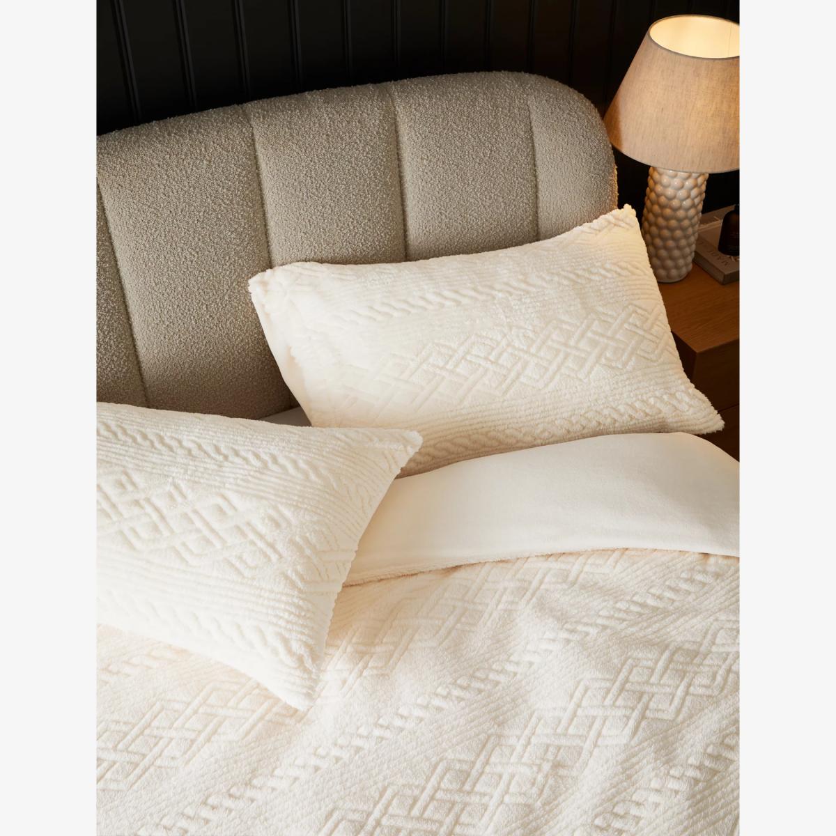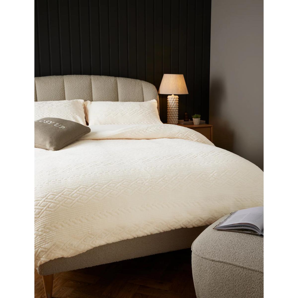 M&S Geometric Cable Knit Fleece Bedding Set - SGL - Natural, Natural