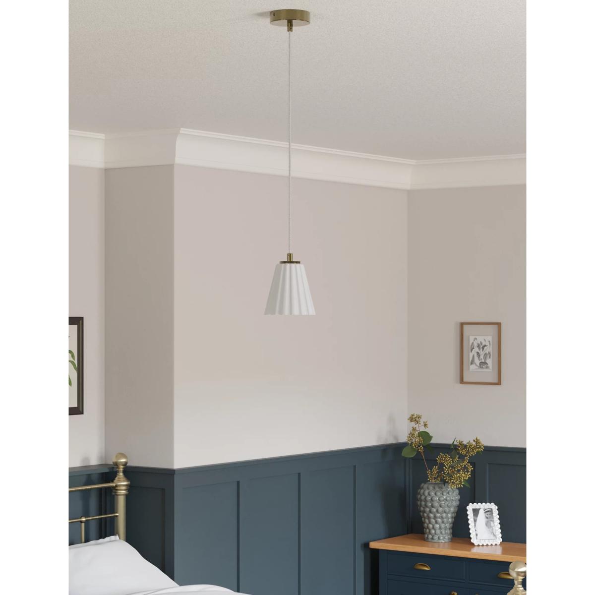 I love this pendant light for its clean and minimal design, making it a versatile choice for various interiors. It works particularly well in contemporary and Scandi-inspired spaces where understated elegance is key. The white finish allows it to blend seamlessly with a range of colour schemes, while its simple shape adds a touch of modernity without overpowering the room. Practical styling tips include hanging it over a dining table, kitchen island, or as part of a cluster in a living area to create focused lighting. To add interest, consider pairing it with other textured or coloured accessories, but keep the overall palette neutral for a sophisticated look.
