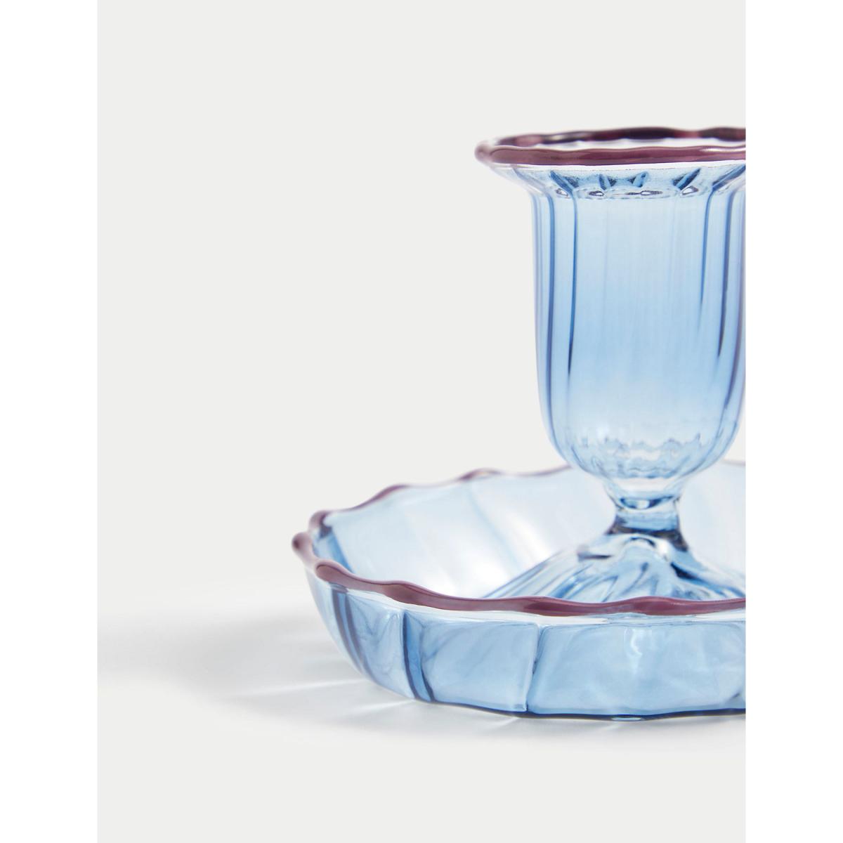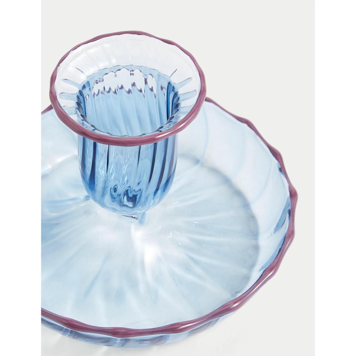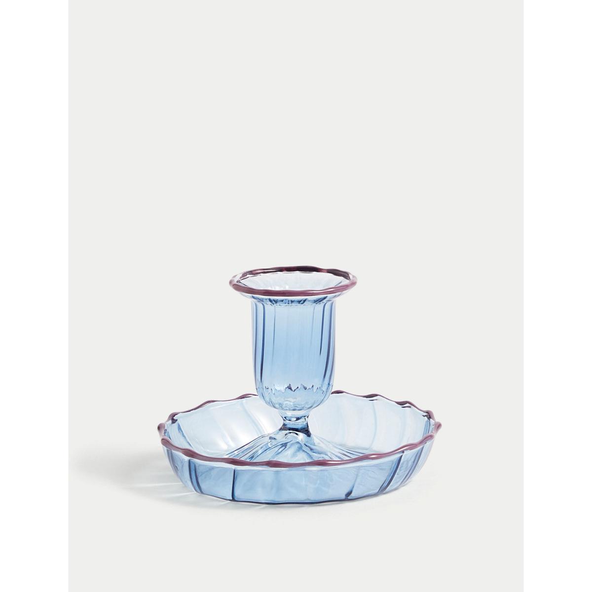 M&S Glass Dinner Candle Holder - Blue, Blue