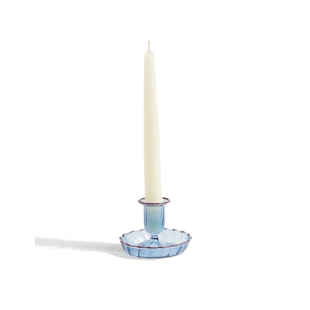 Set the scene for memorable meals with this dinner candle holder. This glamorous centrepiece is crafted from strong borosilicate glass, and finished with contrasting colour edges to complement its softly curved shape.