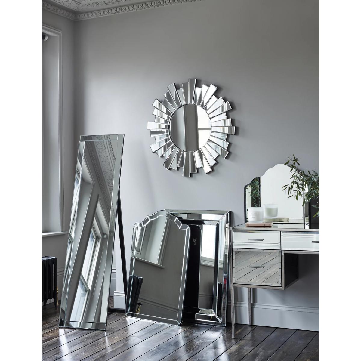 Bevelled edging gives an elegant look to this wall mirror. The rectangular design is full length, making it perfect for last-minute changes to your outfit before heading out.