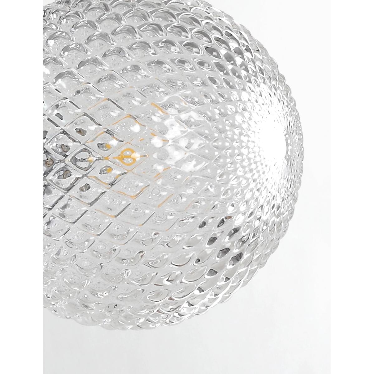 Add a touch of sparkle to your space with this medium ceiling light. This decorative piece features a polished metal mount and three round shades crafted from textured glass. It sits flush to the ceiling for a neat look.