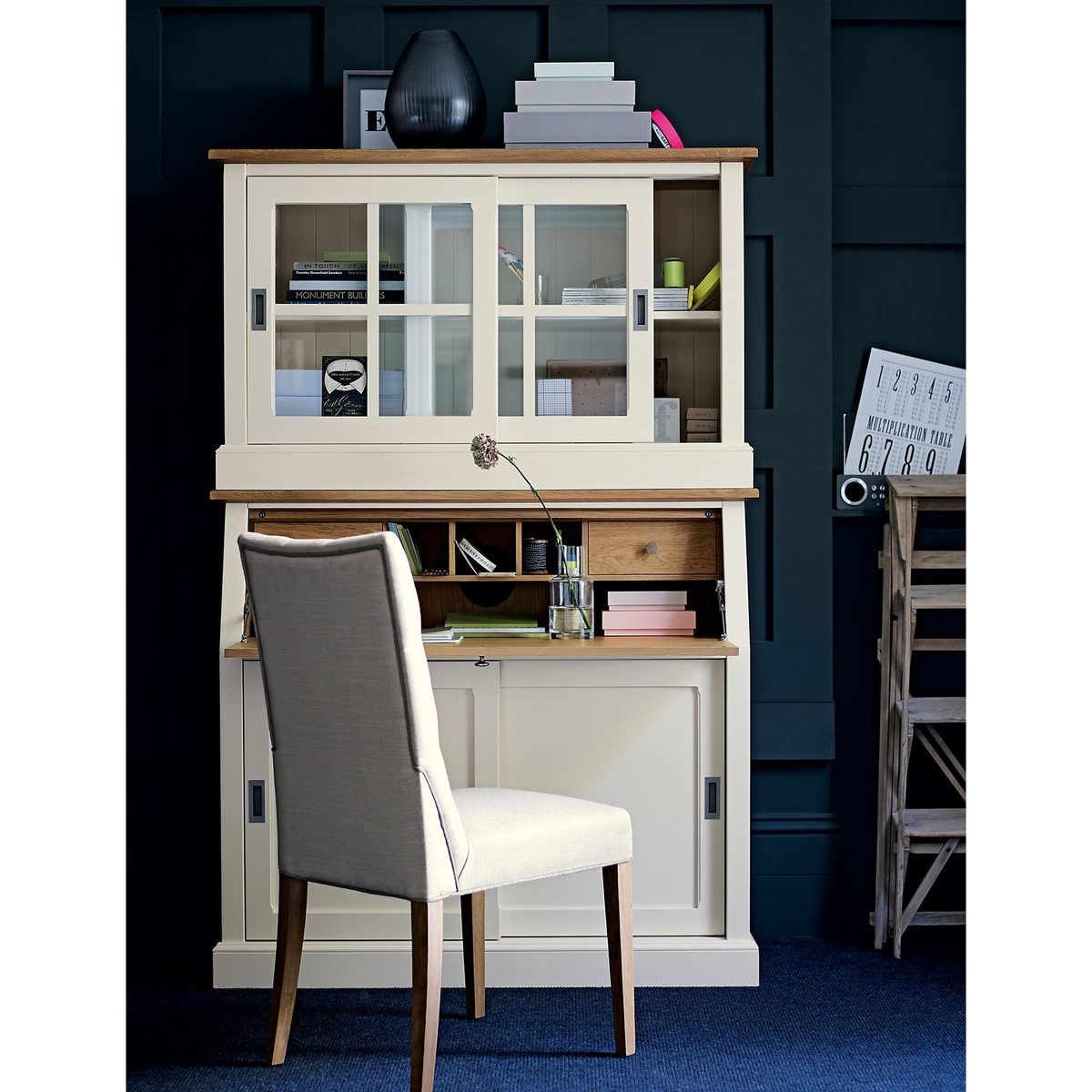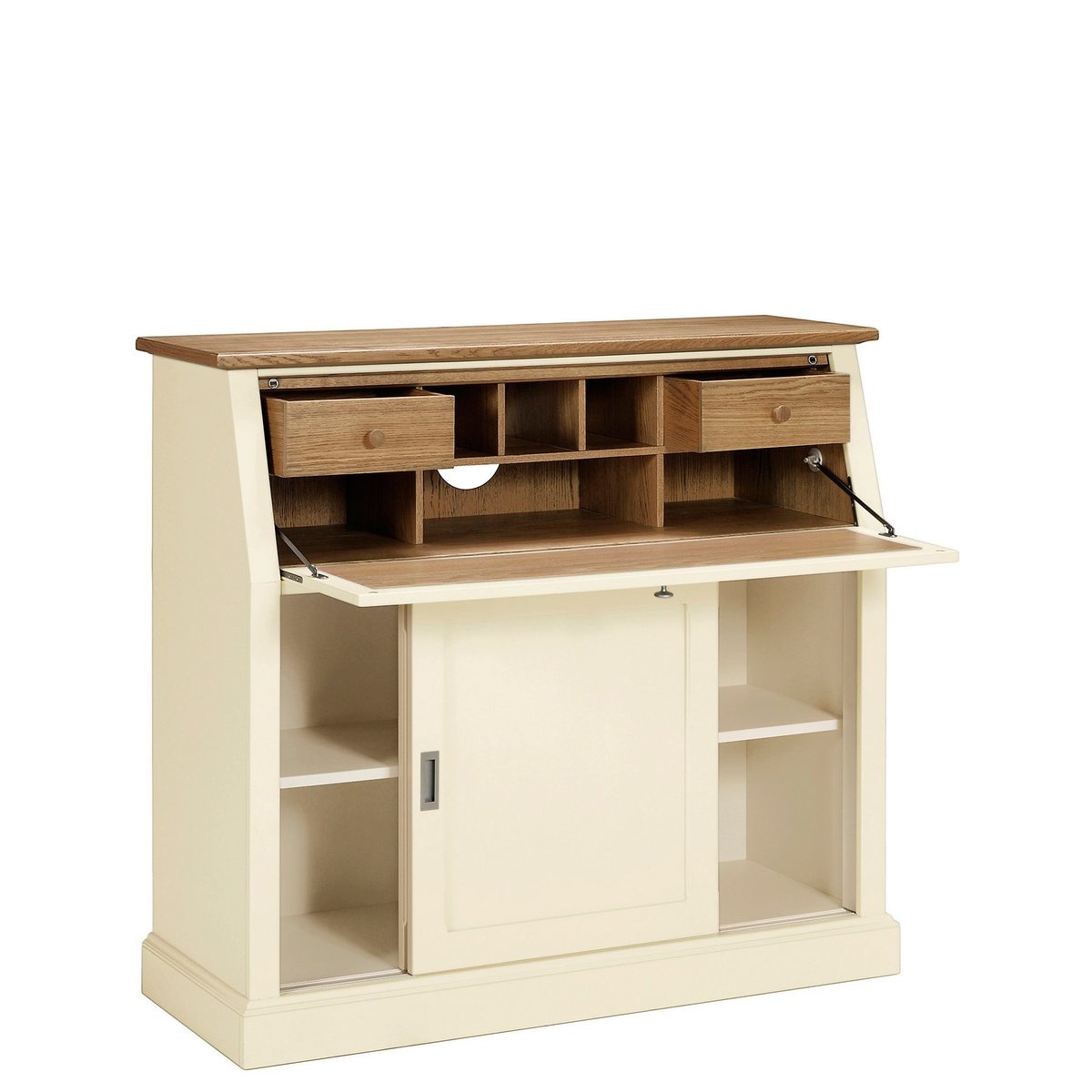 Bringing elegance and sophistication to your living room, this bureau base from our Greenwich range is an excellent storage solution that doubles as the perfect workspace. Made from sustainable wood, this base with oak marquetry top and hand-painted finish looks great alone or when paired with the Greenwich bureau top unit. Our classic cabinet features two sliding doors, two shelves with a generous amount of storage space and a horizontal door that doubles as a writing surface for a perfectly stylish storage and work solution your home.