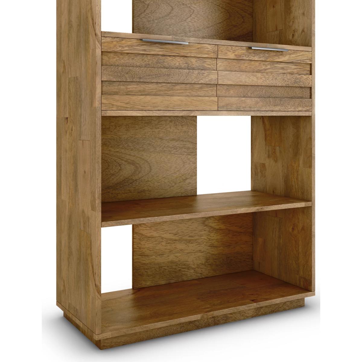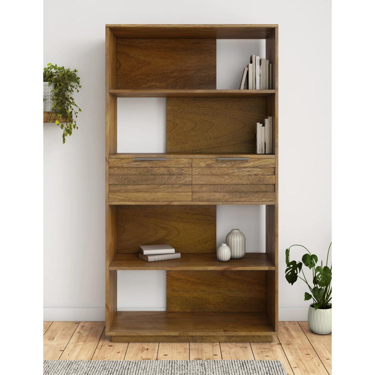 Designed in a rectangular shape with cut-out detailing, this Groove bookcase will bring a contemporary vibe to your home. It's expertly crafted from durable mango wood and features four shelves to display books or ornaments and two drawers for storage. Find matching items in the rest of the range.