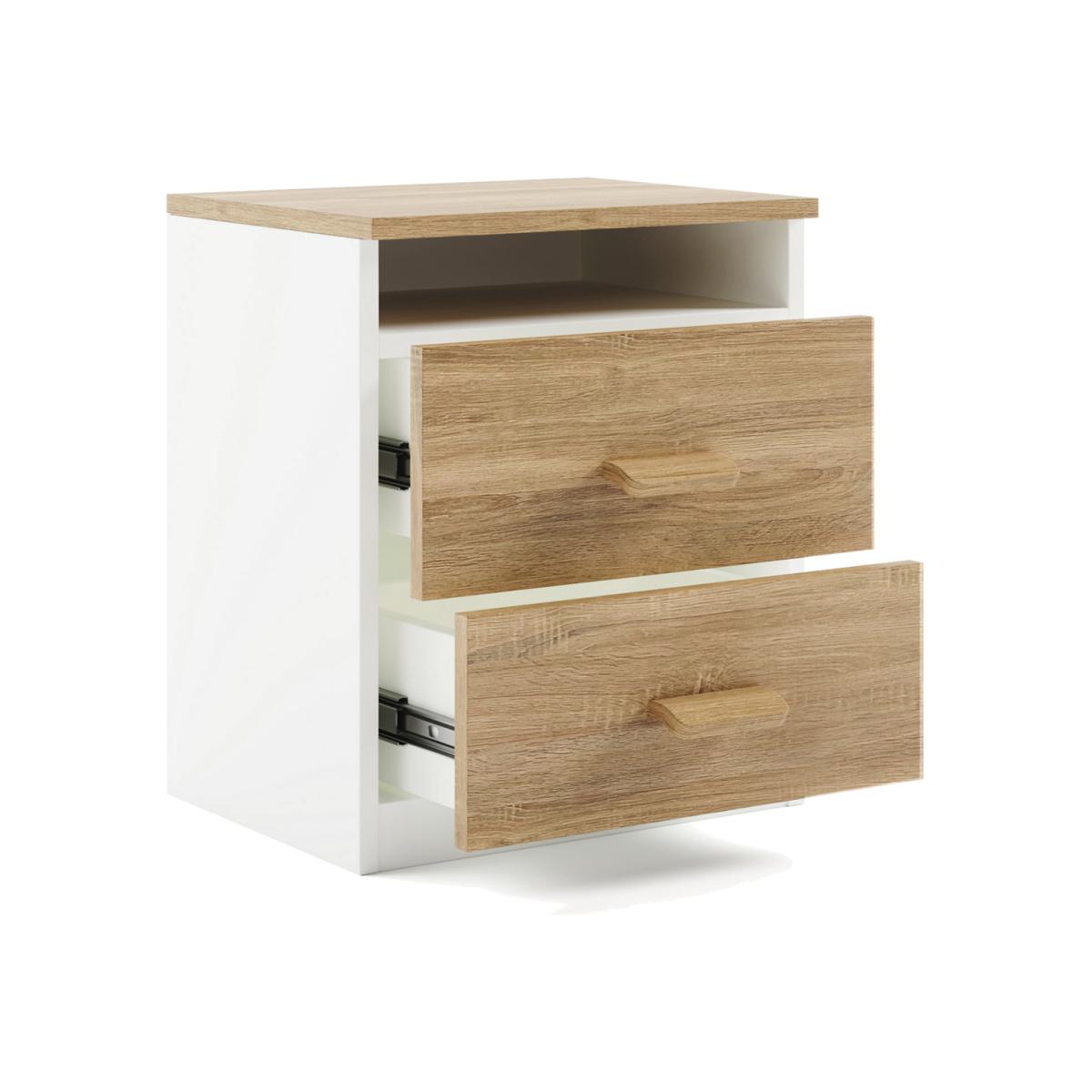 Create a cosy space in their room with this Hadley kids' bedside table. It has an oak-effect finish and its modern design will work well with a variety of interiors. You can store their belongings in the two drawers, display a lamp on the top and pop their favourite books on the open shelf. Further pieces in the Hadley range are also available. We’re so confident our furniture is built to last, our industry-leading guarantee covers any manufacturing failure on all furniture. That’s our promise, and why our furniture comes with a 10-year guarantee that you can trust. Excludes: outdoor furniture and any issues that are a result of normal wear and tear, improper care or accidental damage.