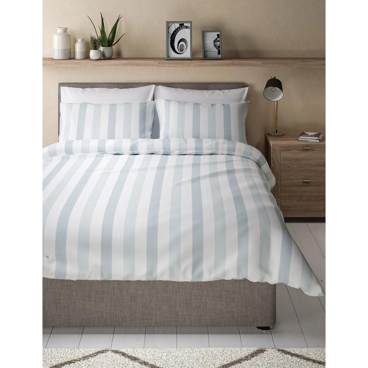 M&S Hadley Pure Cotton Striped Bedding Set - SGL - Duck Egg, Duck Egg,Blue Mix