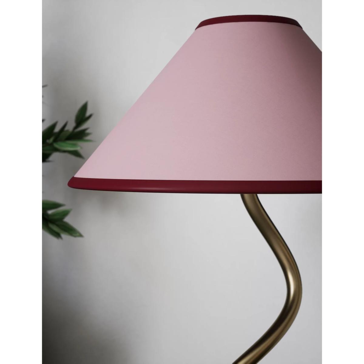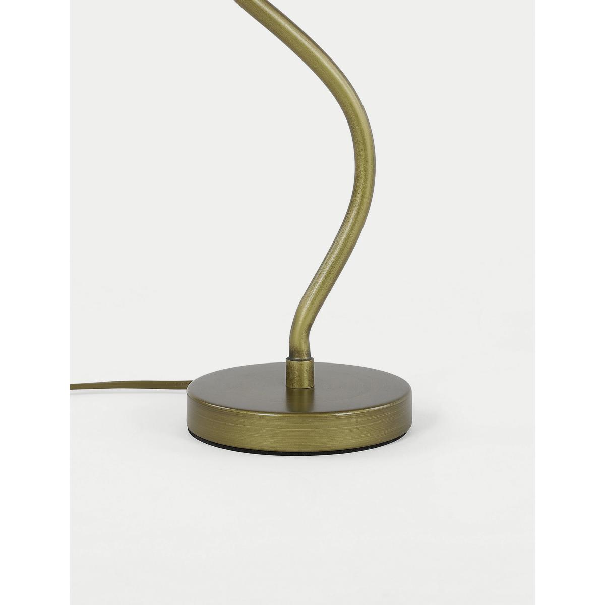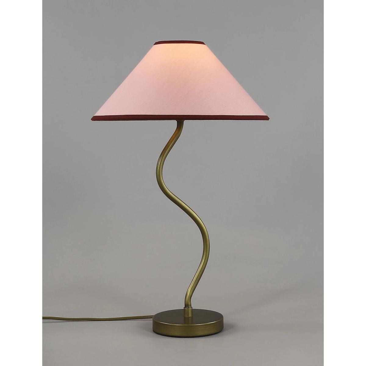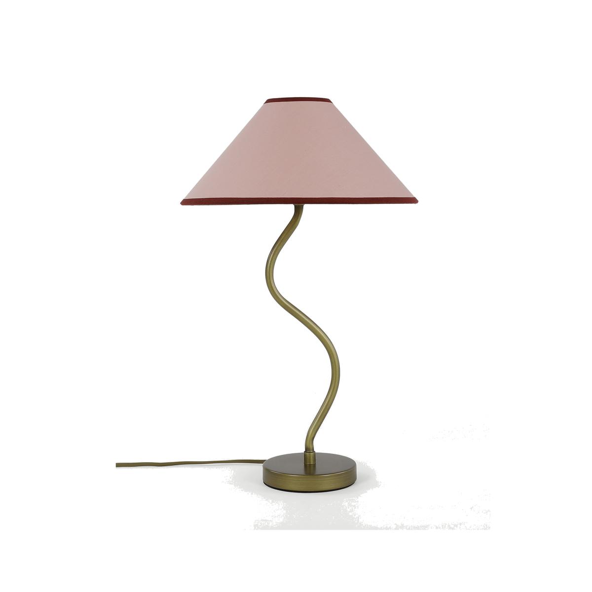 Our Hallie table lamp has a wavy shape that adds instant appeal to your space. It's set on a matching metallic base, with a fabric shade that has contrast trims for an eye-catching finish.