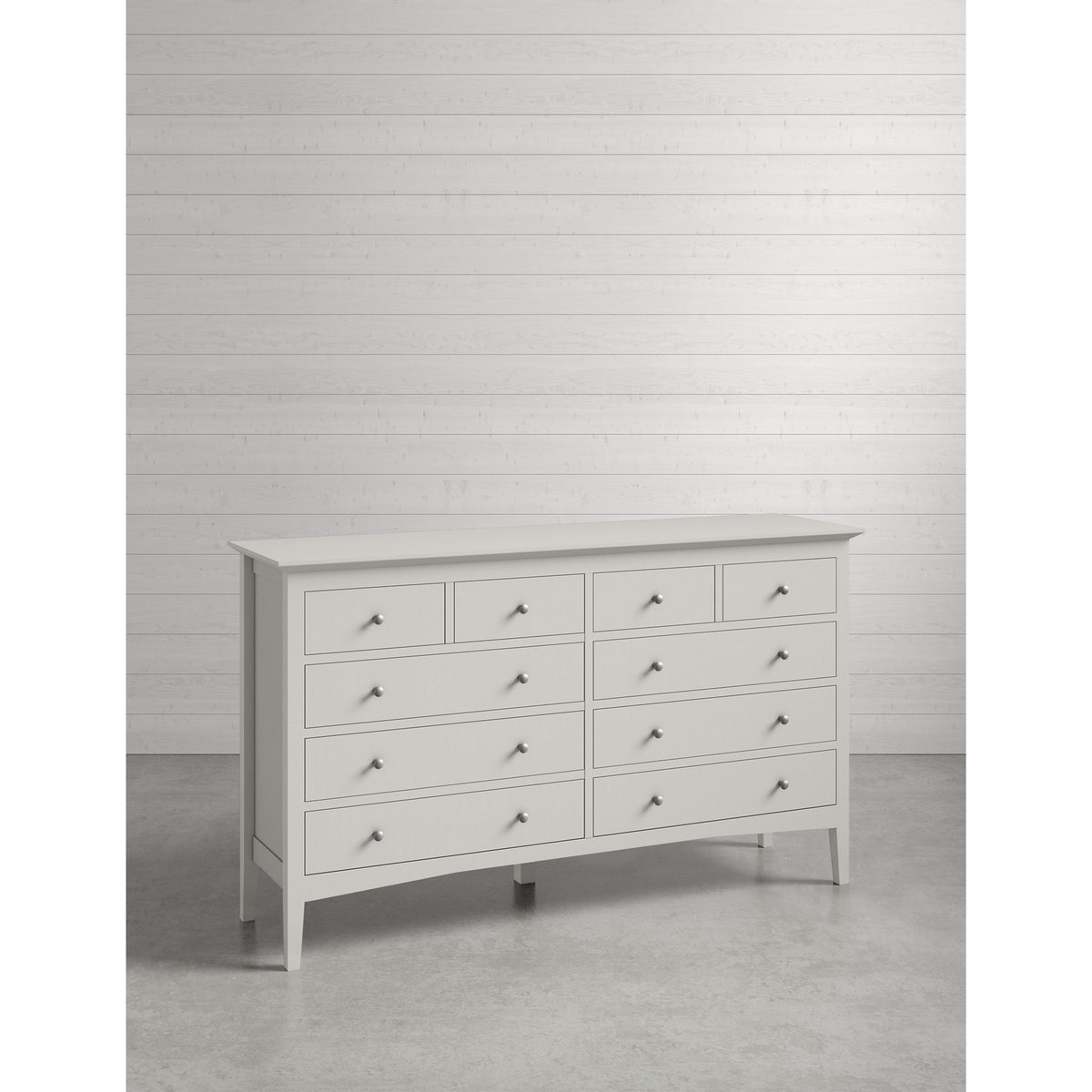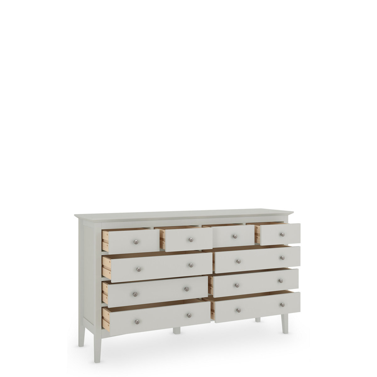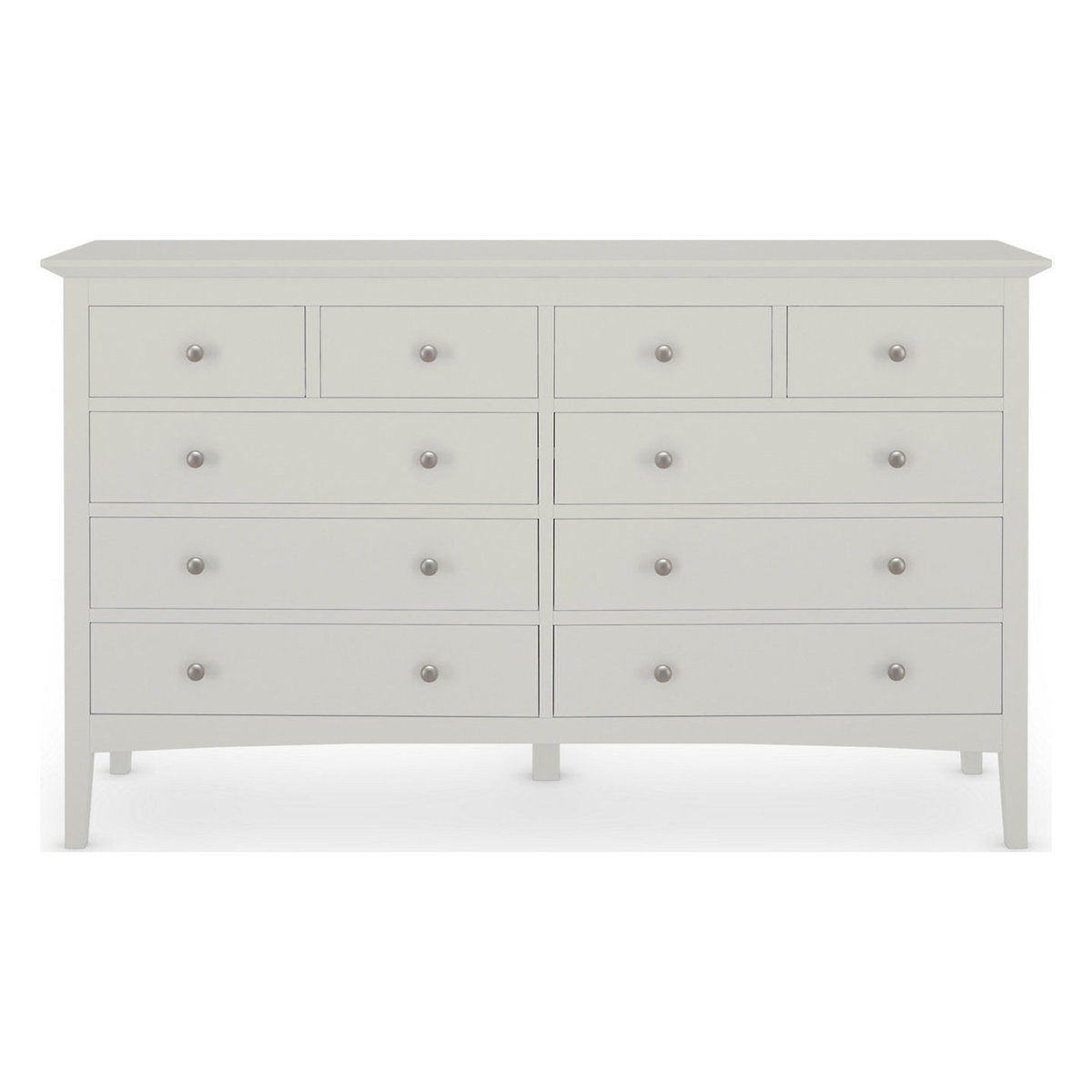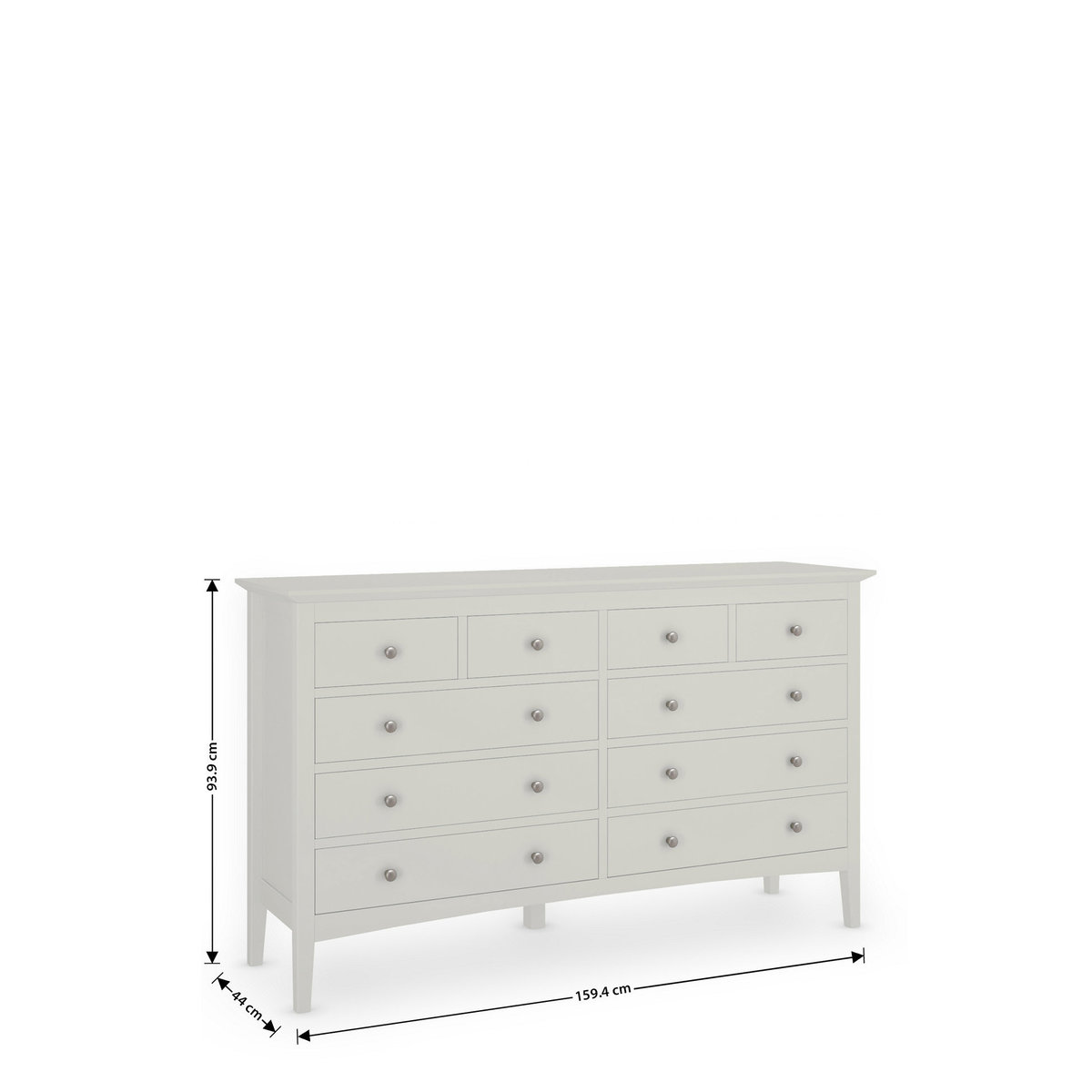 For the home that needs some extra space, our elegant ten-drawer chest from the Hastings Collection will do the trick and then some. Featuring six full size and four half size drawers, this elegant cabinet is perfect for decluttering any room, while its pretty soft grey colour and chrome handles bring a touch of class to your decor. Made from sustainable wood with pre-glued and pressed joints for extra strength, this is one cabinet that will last. We're so confident our furniture is built to last, our industry-leading guarantee covers any manufacturing failure on all furniture. That's our promise, and why our furniture comes with a 10-year guarantee that you can trust. Excludes: outdoor furniture and any issues that are a result of normal wear and tear, improper care or accidental damage. Please see checkout for accurate delivery dates.