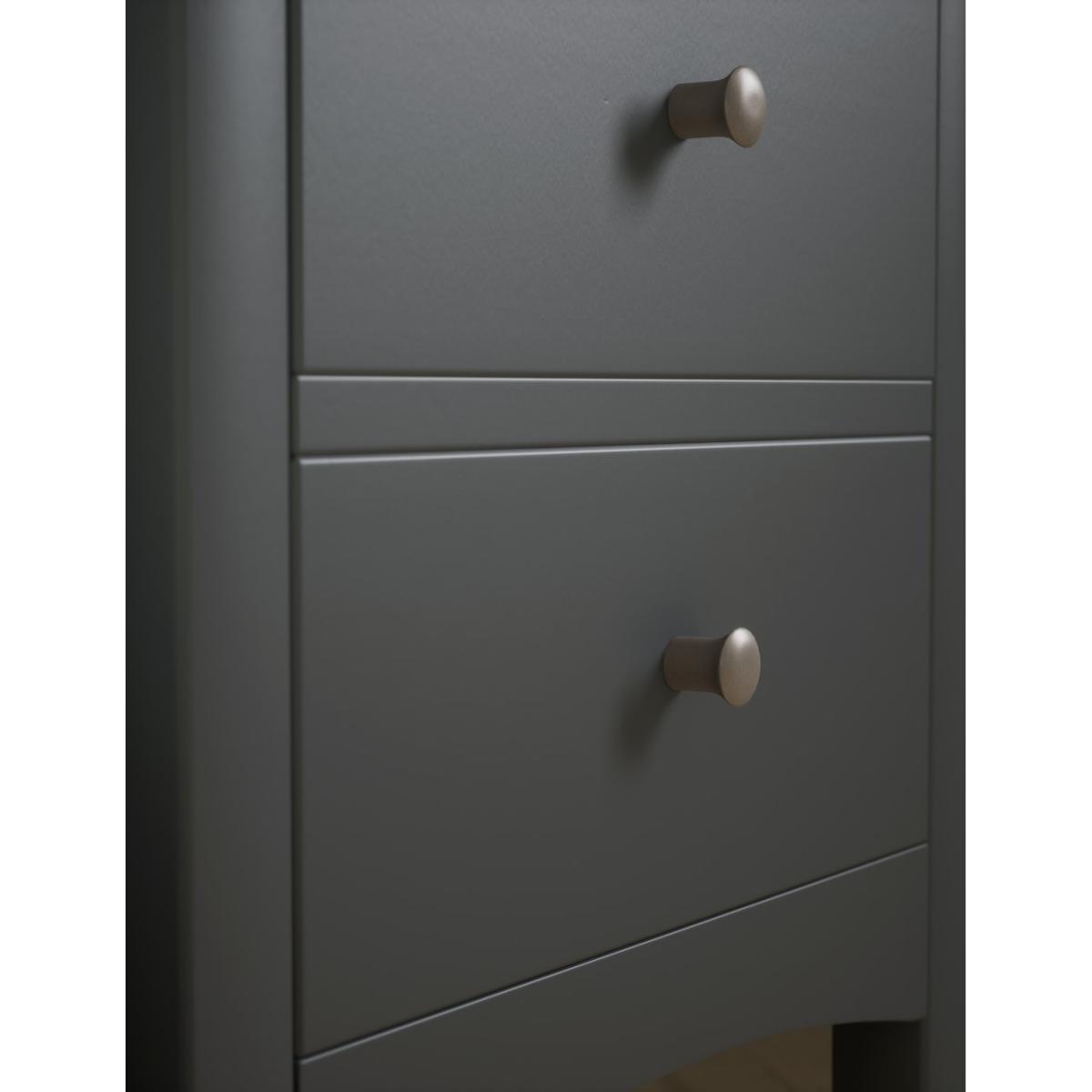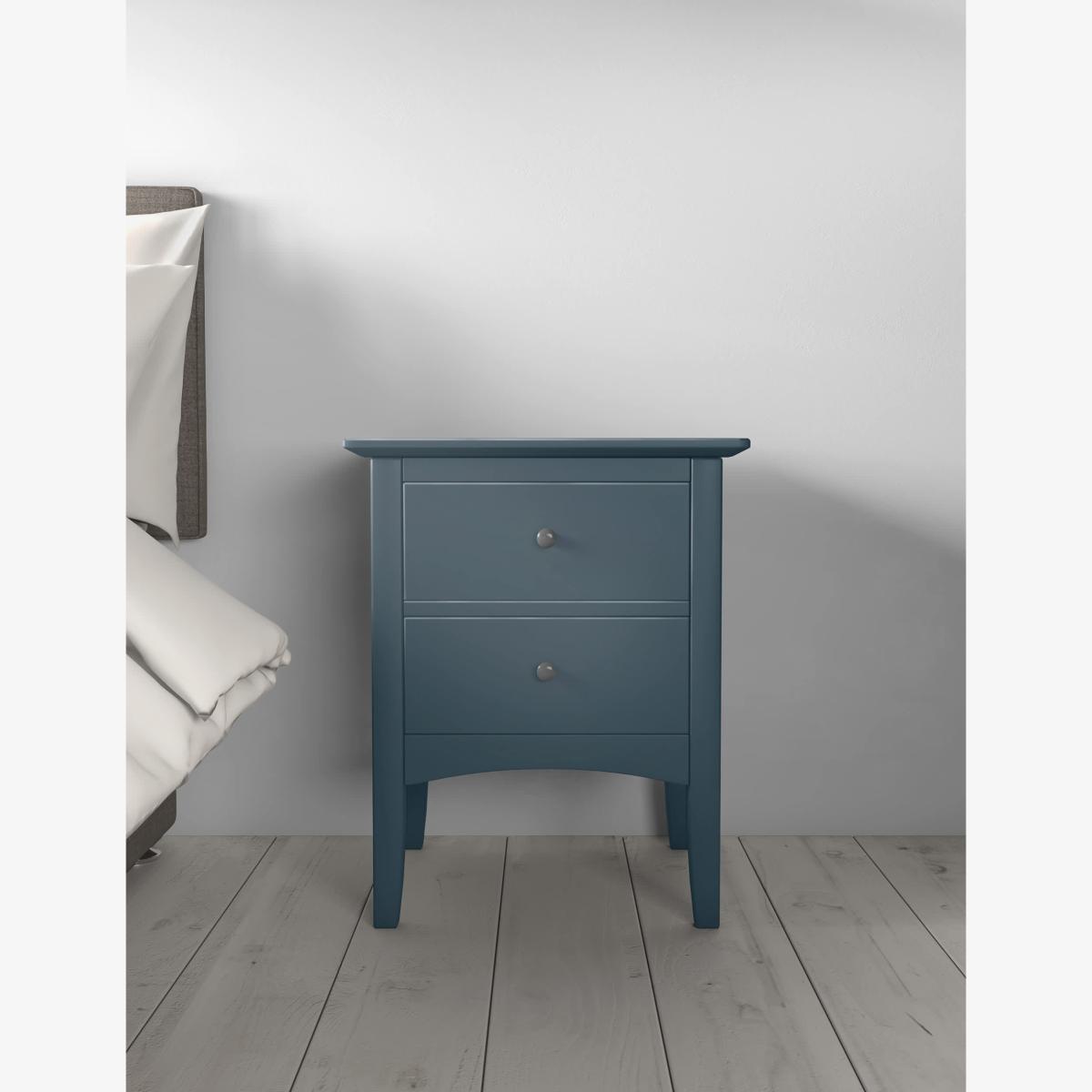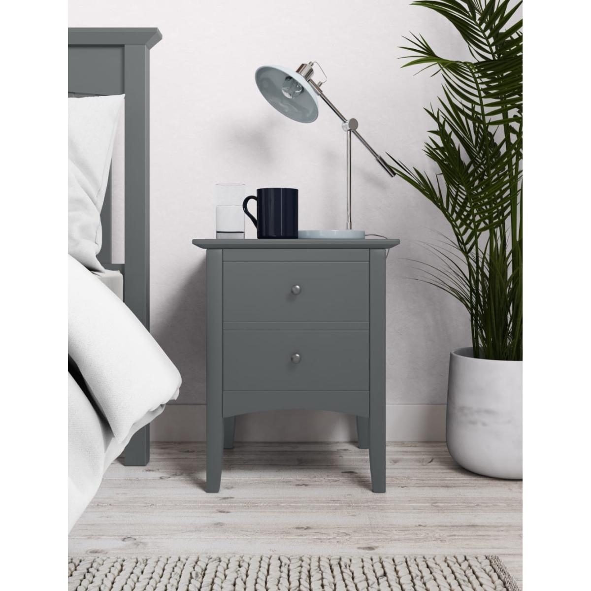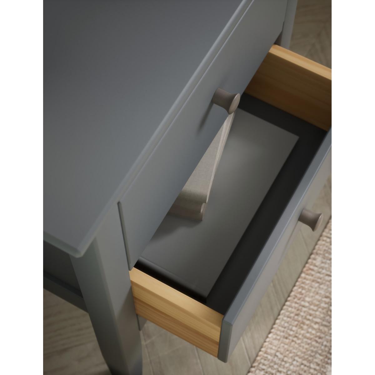 Stand this elegant bedside table next to your bed and add a touch of easy style to your room. From our Hasting collection, this bedside table comes in a range of colours, all with an elegant painted finish and sleek profile. Straight lines, narrow legs, and the wide cut-out plinth give a chic look to your bedroom whilst the two drawers provide ample storage finished with contrasting handles. We’re so confident our furniture is built to last, our industry-leading guarantee covers any manufacturing failure on all furniture. That’s our promise, and why our furniture comes with a 10-year guarantee that you can trust. Excludes: outdoor furniture and any issues that are a result of normal wear and tear, improper care or accidental damage.