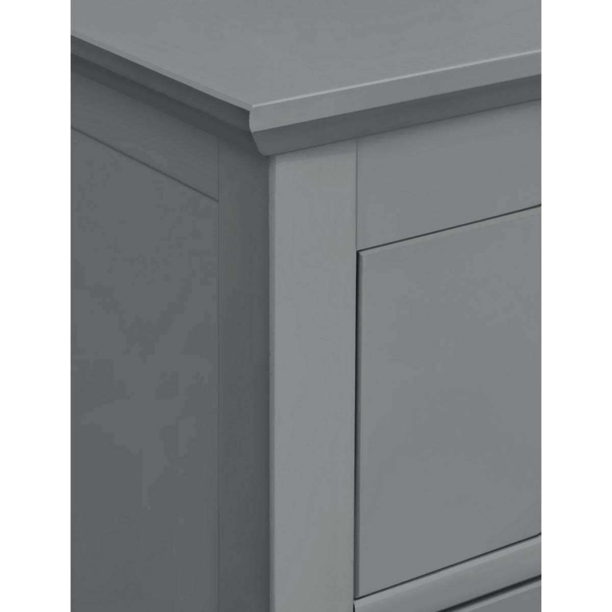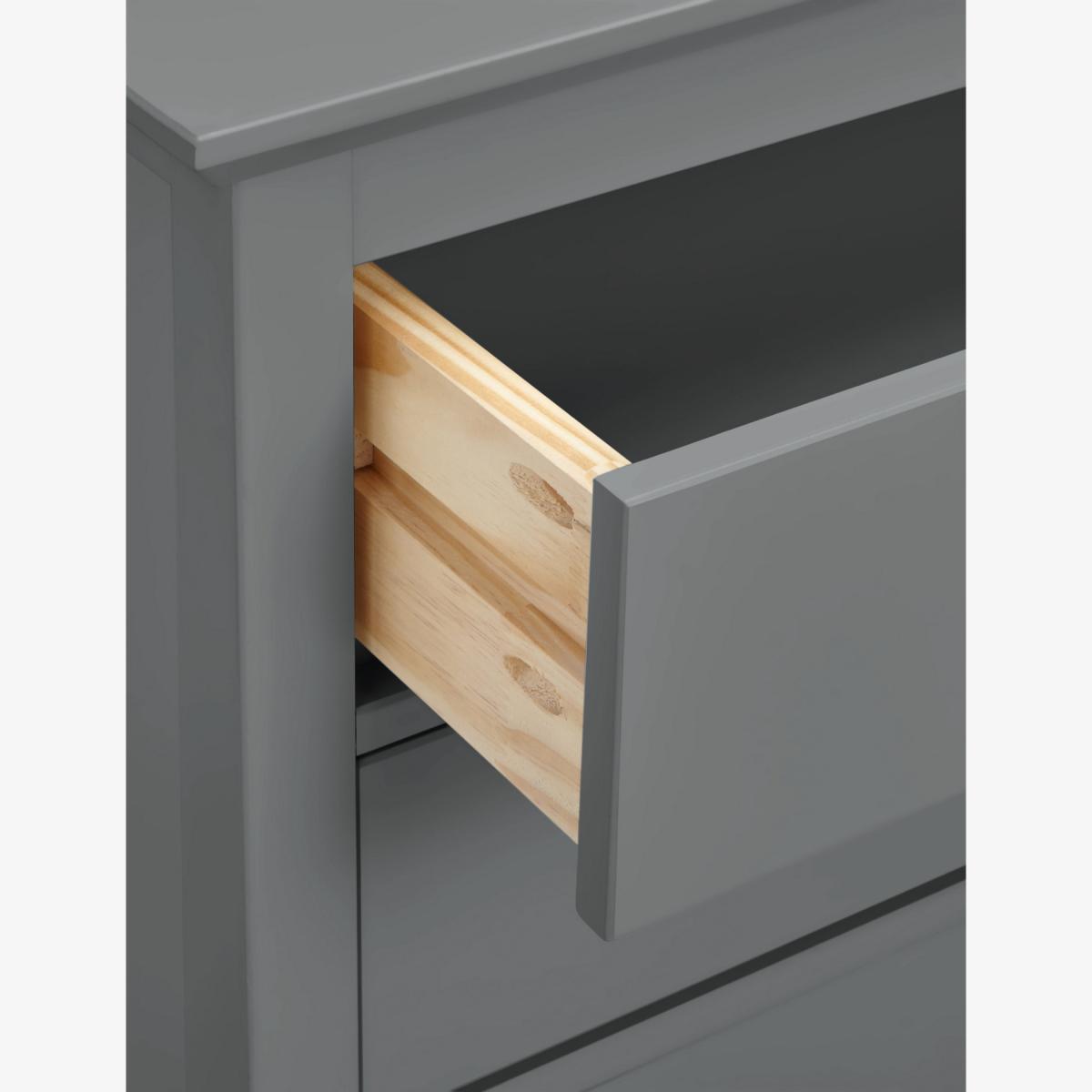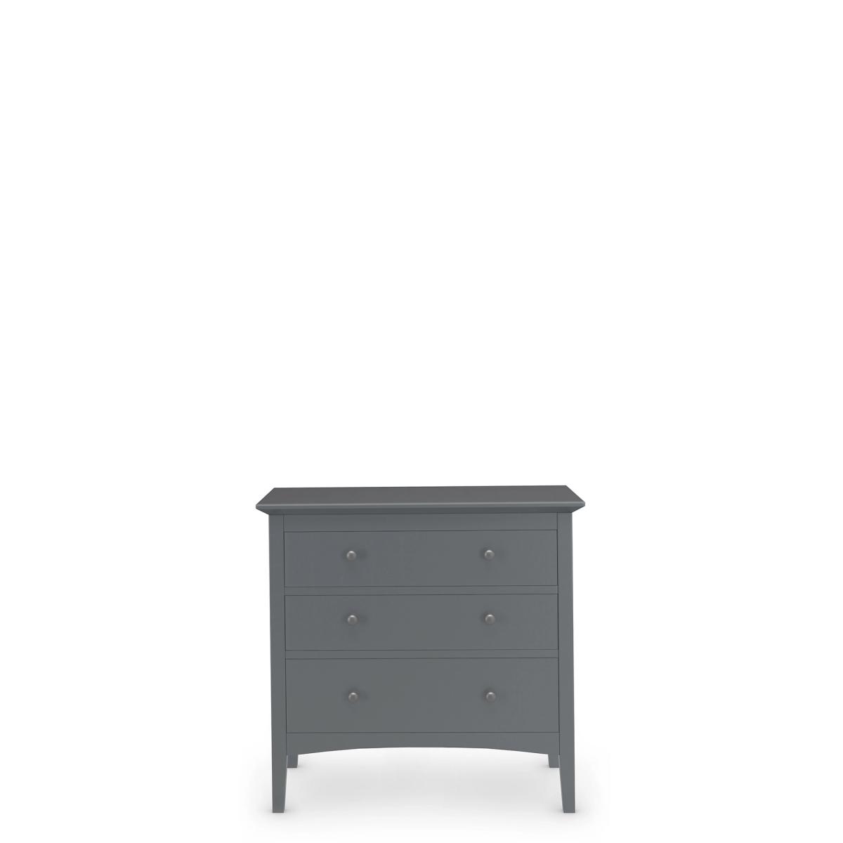 Beautifully finished in a modern dark grey, this sleek chest of drawers will be the focal point of any room. Made from sustainable wood, this sturdy unit gives you ample room to store your clothing, thanks to three generously sized drawers, with each drawer featuring a black metal knob for added style and contrast. A cut-out plinth completes this chest, adding to its sleek appeal. With ample space on top for a TV, plants, books, or bedroom essentials, you can't go wrong with this expertly crafted chest of drawers. We’re so confident our furniture is built to last, our industry-leading guarantee covers any manufacturing failure on all furniture. That’s our promise, and why our furniture comes with a 10-year guarantee that you can trust. Excludes: outdoor furniture and any issues that are a result of normal wear and tear, improper care or accidental damage.