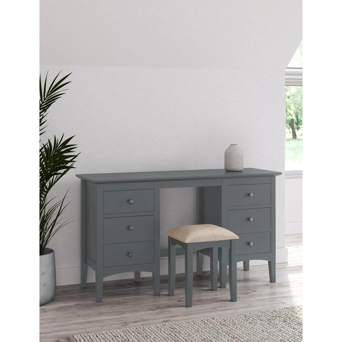 Offering a charming element of design to your bedroom, this Hastings dressing table features six generously sized drawers and a matching upholstered stool, giving you plenty of storage and a comfortable seat. A large table top also makes it the perfect beauty station, with room for mirrors, makeup and skincare essentials. Made from wood in a choice of colours, this dressing table set will go well in any decor. We’re so confident our furniture is built to last, our industry-leading guarantee covers any manufacturing failure on all furniture. That’s our promise, and why our furniture comes with a 10-year guarantee that you can trust. Excludes: outdoor furniture and any issues that are a result of normal wear and tear, improper care or accidental damage.