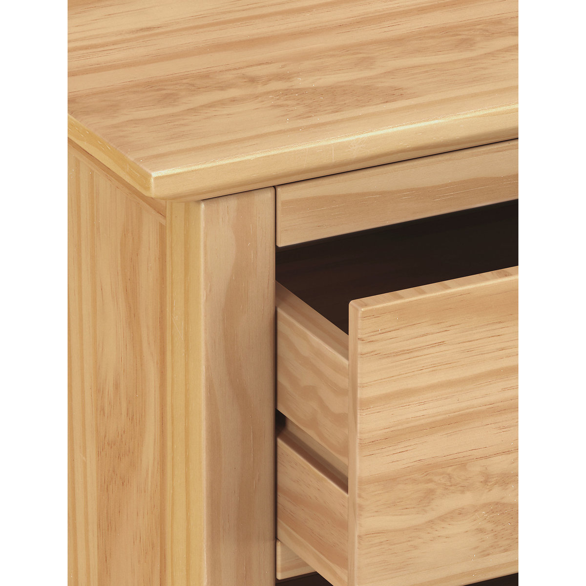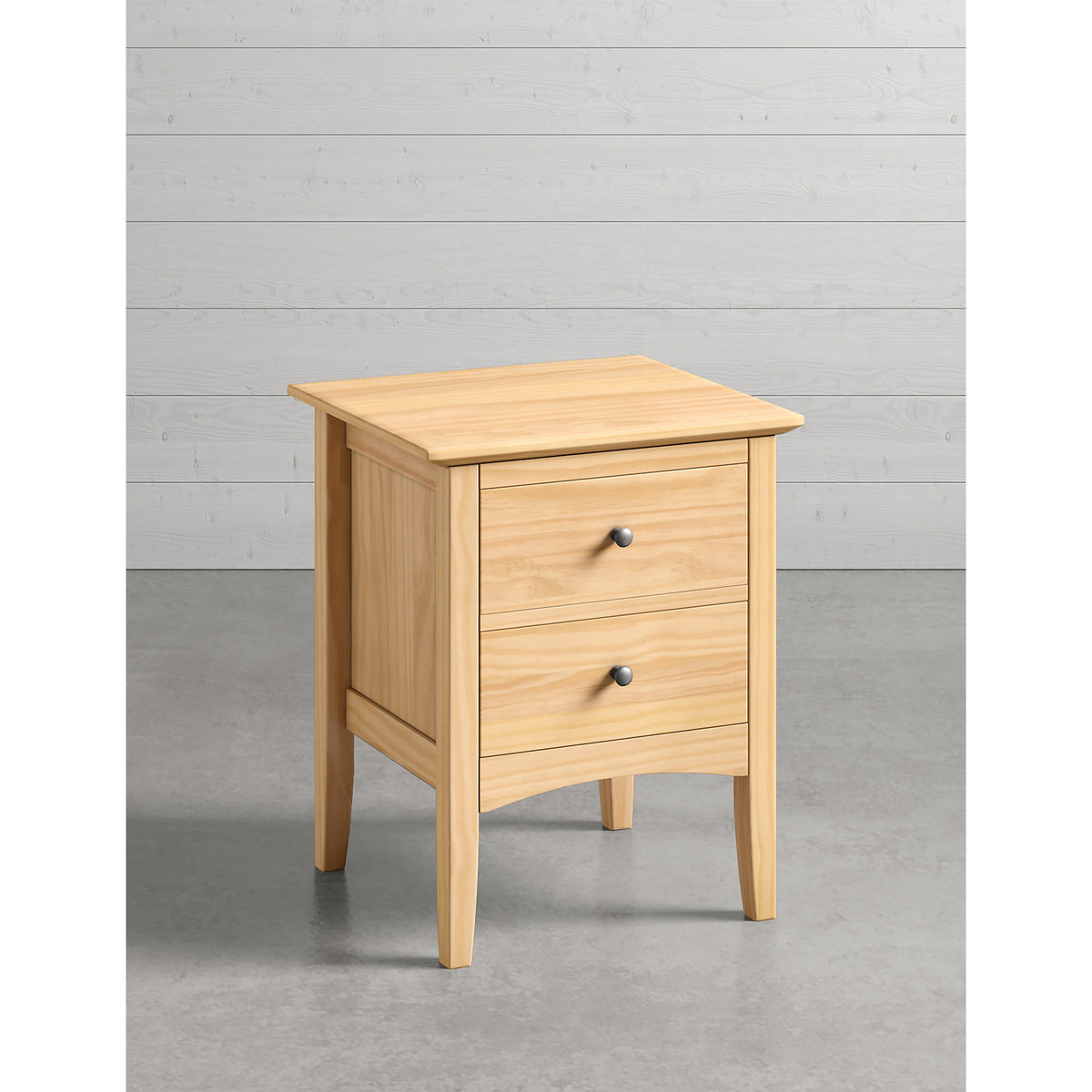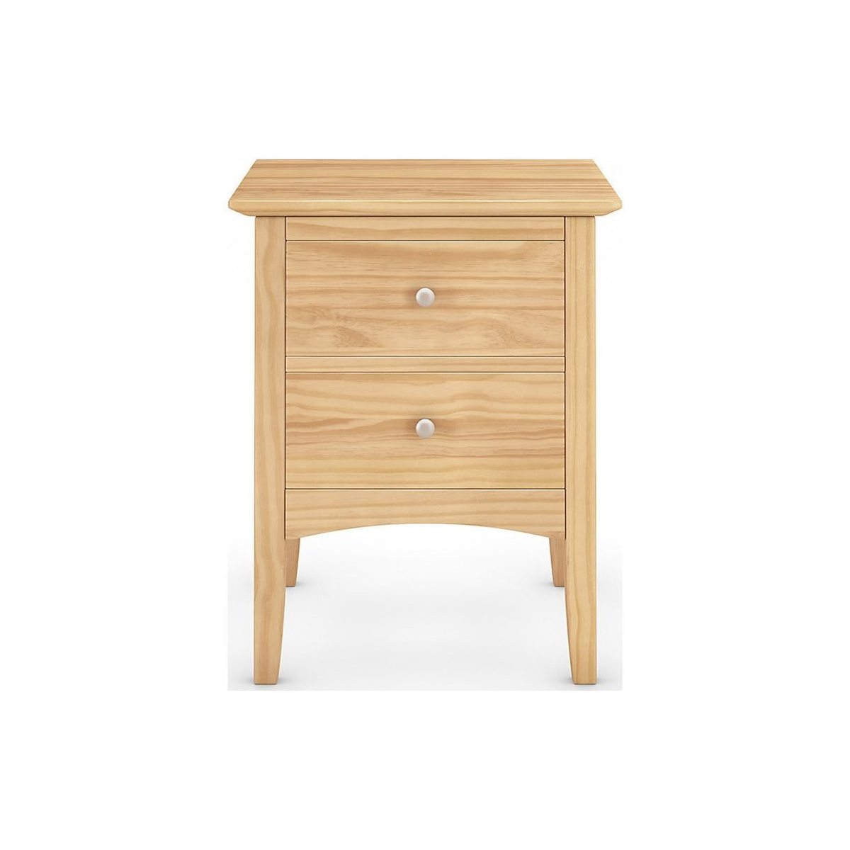 For a classic look, the Hastings bedside table is crafted predominately from sustainable solid pine and finished with a natural pine veneer to emphasize the natural wood grain. Chrome handles add a modern touch to the look and its compact size means this bedside table will fit into any bedroom. Complete with two small drawers for keeping all your night-time essentials nearby, this timeless bedside cabinet makes the perfect addition to your bedroom furniture.