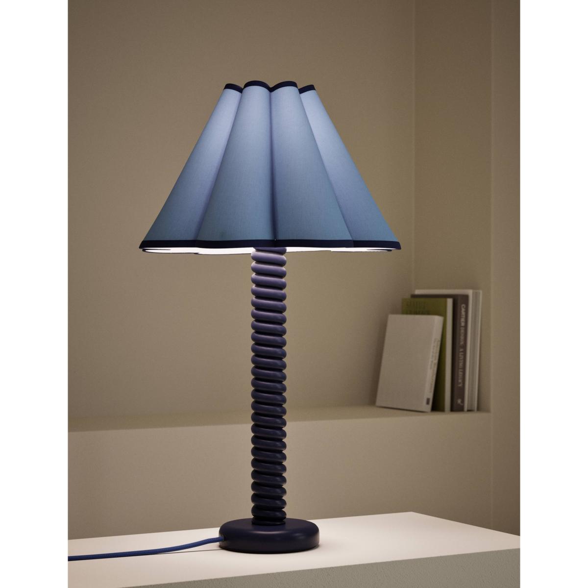 Bring a traditional touch to your desk or bedside cabinet with this stylish table lamp. The design features a textured swirl base made from resin with a matte finish. This is complemented by a flower-shaped shade.