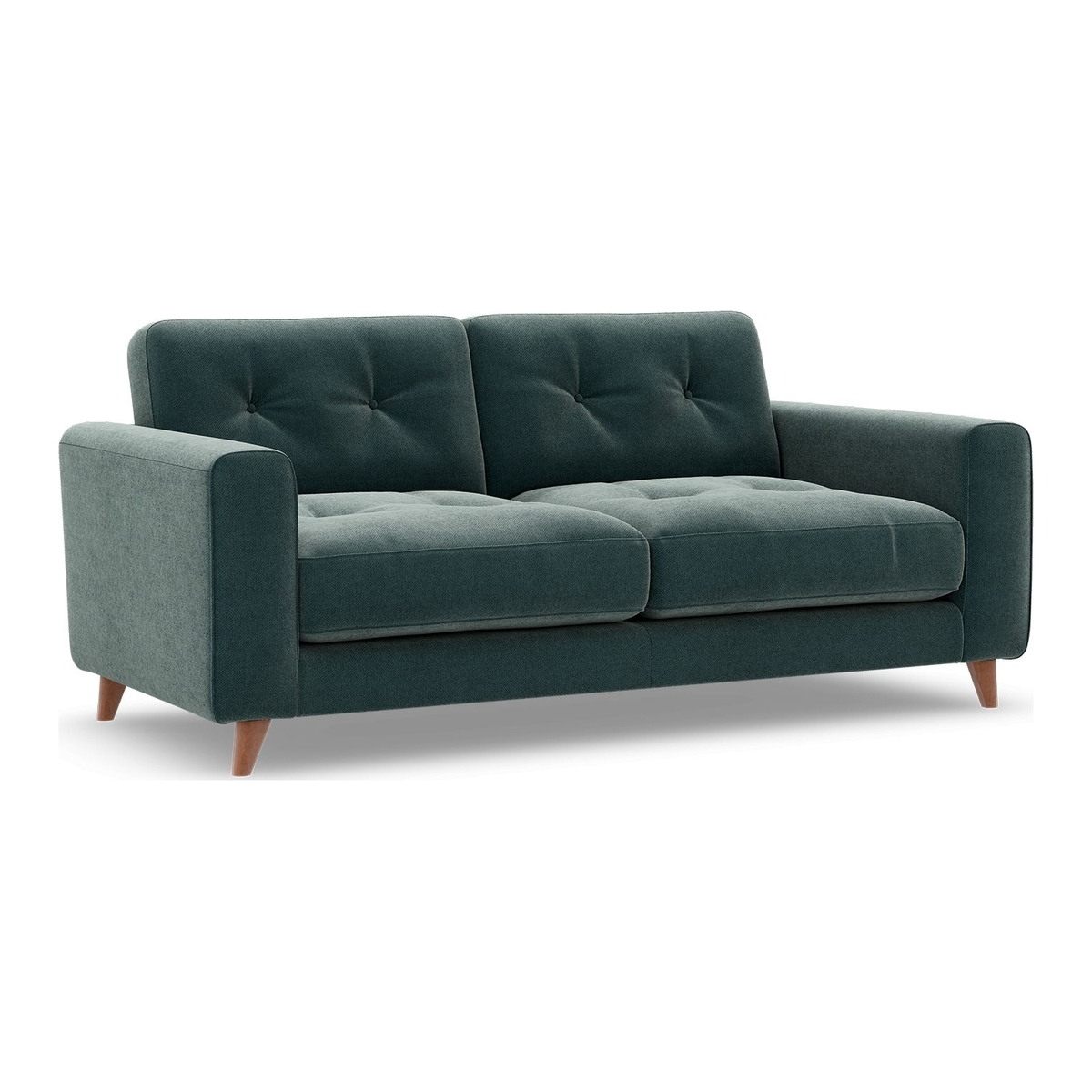This sofa is a stylish choice for adding colour and personality to a variety of interiors. Its classic shape and supportive arms make it a practical yet inviting piece, perfect for both relaxed family living and more formal sitting rooms. I love the range of colours - from navy and teal to soft blush pink and ochre - which allows for easy coordination with existing decor or makes a great statement when paired with neutral tones. To style it effectively, consider adding textured cushions or throws that complement or contrast its hues to create depth. It works well in contemporary, Scandi, or even vintage-inspired interiors, especially when layered with simple wooden or metal accents to enhance its mid-century vibe.