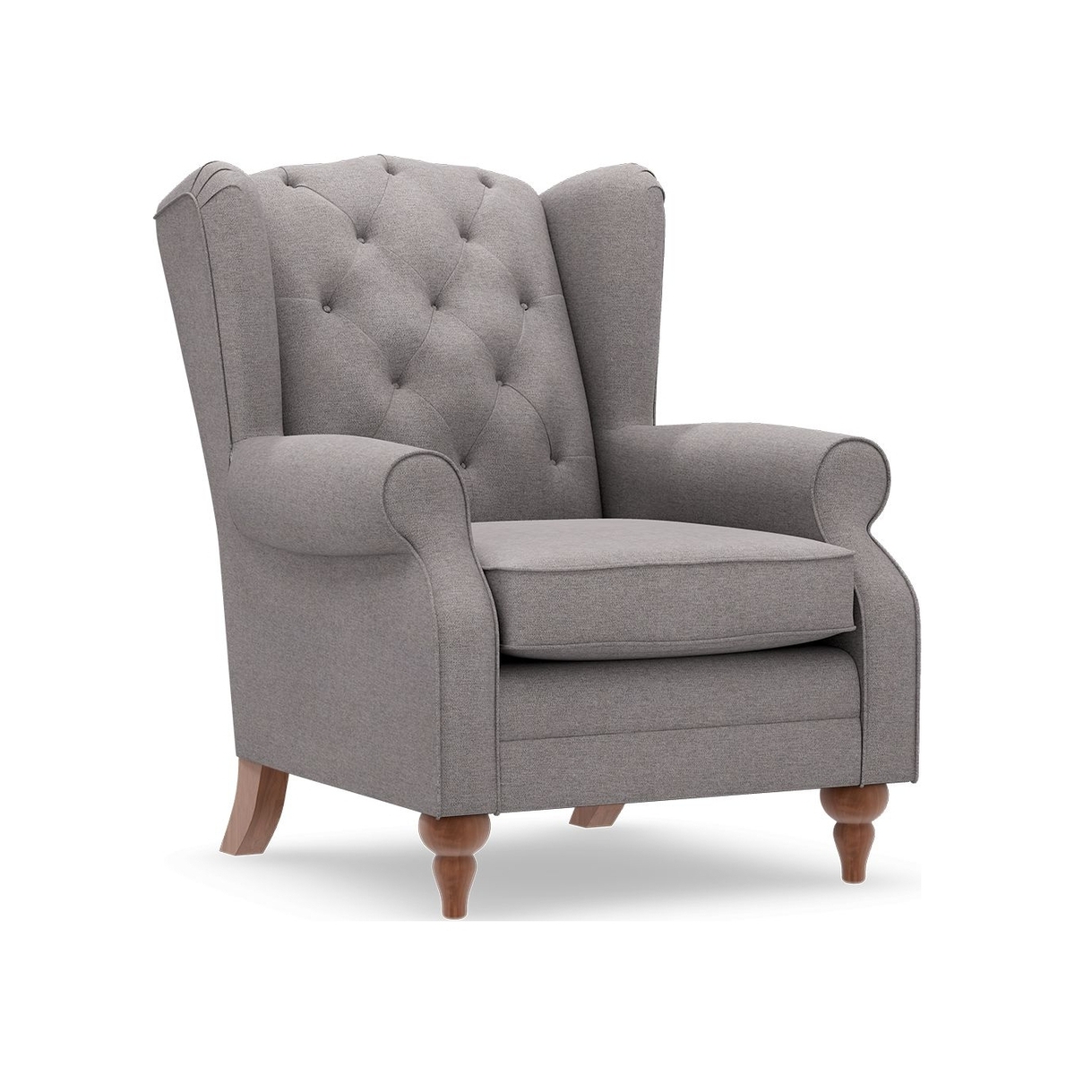 I love this armchair for its timeless, classic silhouette combined with the versatile button detailing that adds a touch of traditional charm. Its neutral grey upholstery makes it adaptable to a range of colour schemes, from contemporary to vintage-inspired interiors. It works particularly well in cosy reading nooks, living rooms, or even bedrooms where a statement yet practical piece is desired. For styling, consider pairing it with textured cushions in jewel tones or soft neutrals to elevate its look. Complement it with wooden or metallic side tables and add a throw blanket for extra comfort. This piece is ideal for introducing a touch of understated elegance to both modern and eclectic spaces.