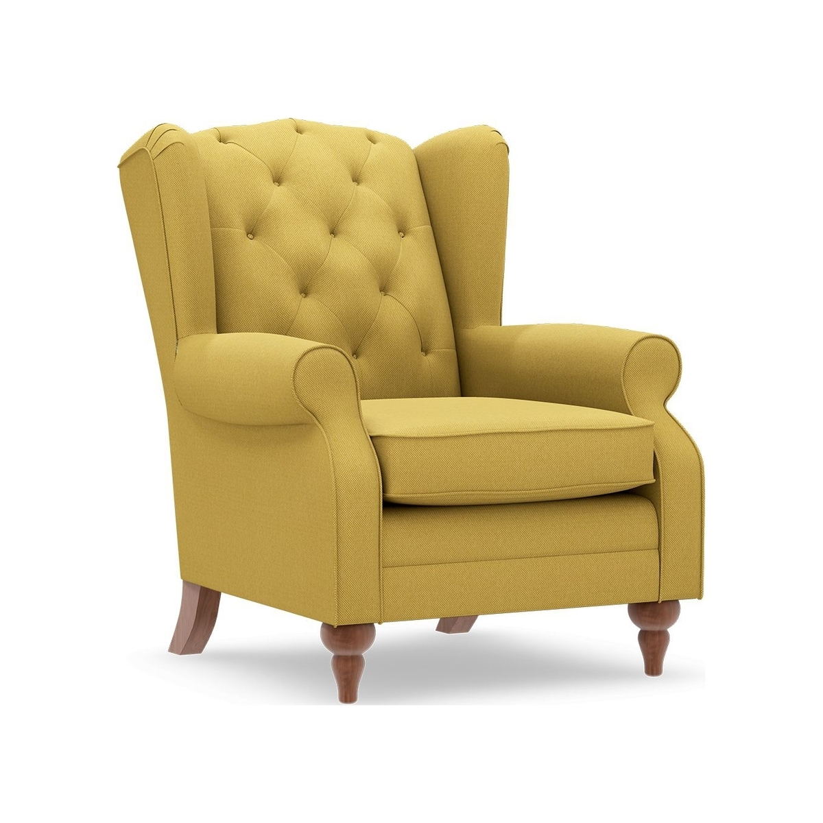 This armchair is a versatile statement piece with a classic design and a modern colour palette, making it suitable for a range of interiors. The bright yellow, or mustard hue, adds warmth and personality, working particularly well in contemporary, eclectic, or vintage-inspired schemes. It pairs beautifully with neutral tones for a pop of colour or can complement other muted shades like navy, grey, or mushroom for a more subdued look. Practical styling tips include accessorising with soft throws or cushions in contrasting or matching colours to add comfort and visual interest. Its size and shape make it ideal for cosy reading corners or as an accent piece in living spaces, and it can serve as a focal point in a minimalist setting or be layered into a more vibrant, layered interior. The timeless button-tufted design also lends an air of sophistication, making it a versatile choice for both classic and modern styles.