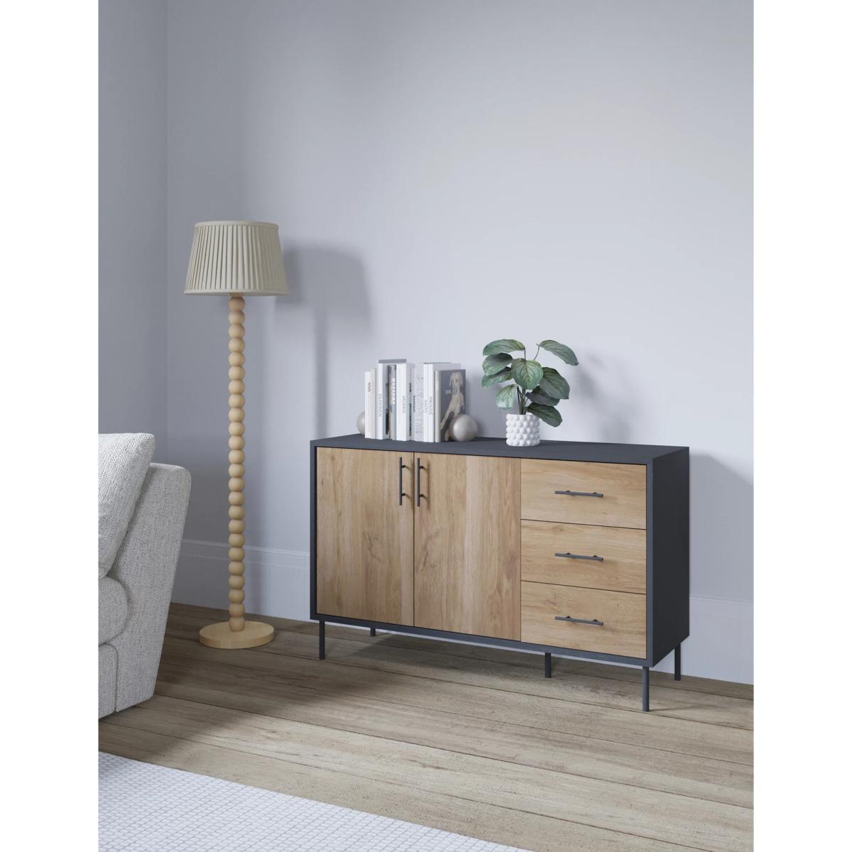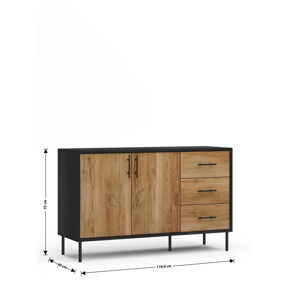 Combining contemporary and classic designs, this large sideboard from the Holt range will easily fit in with most décors. It has an oak-effect finish with a darker surround and feet for an industrial look. With three drawers and two cupboards, it has plenty of room to store your belongings. Plus, you can display your favourite ornaments on top. Matching pieces in the Holt range are also available. We’re so confident our furniture is built to last, our industry-leading guarantee covers any manufacturing failure on all furniture. That’s our promise, and why our furniture comes with a 10-year guarantee that you can trust. Excludes: outdoor furniture and any issues that are a result of normal wear and tear, improper care or accidental damage.