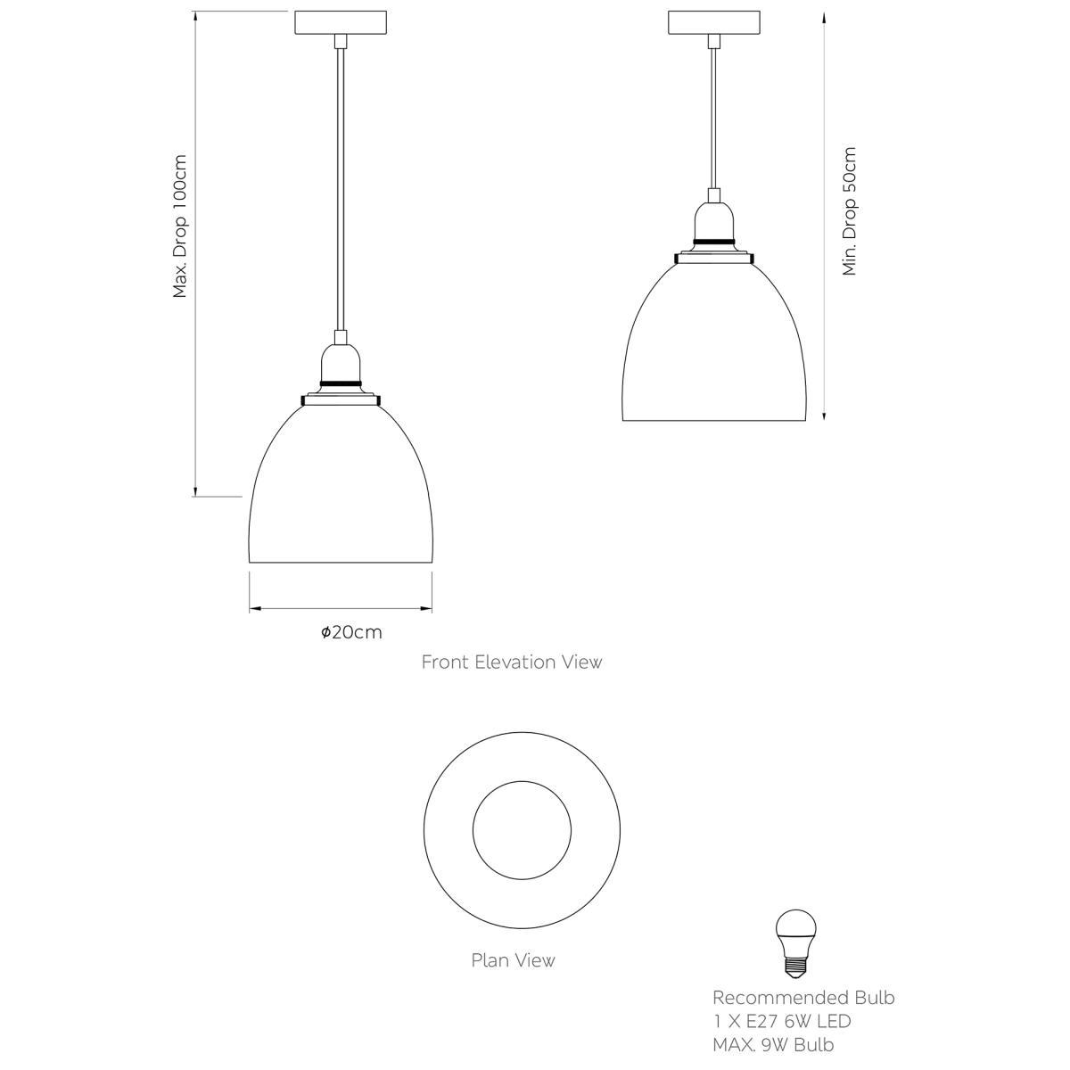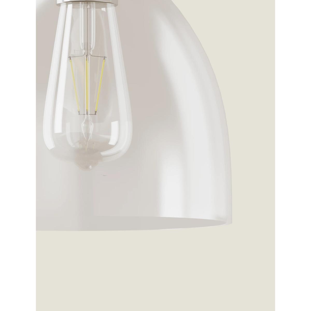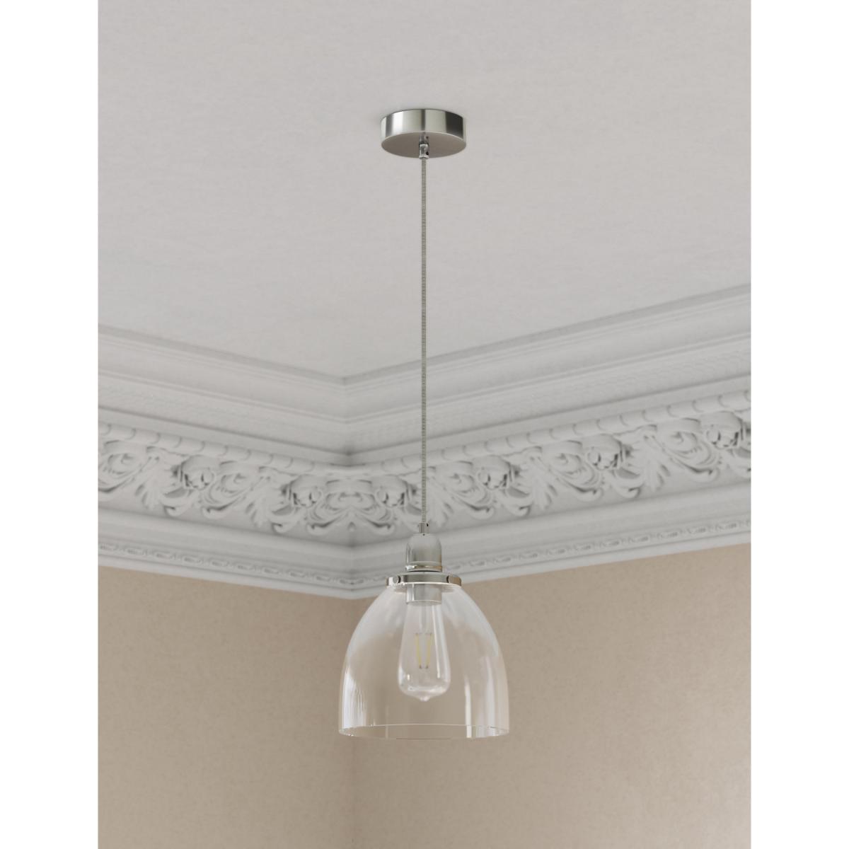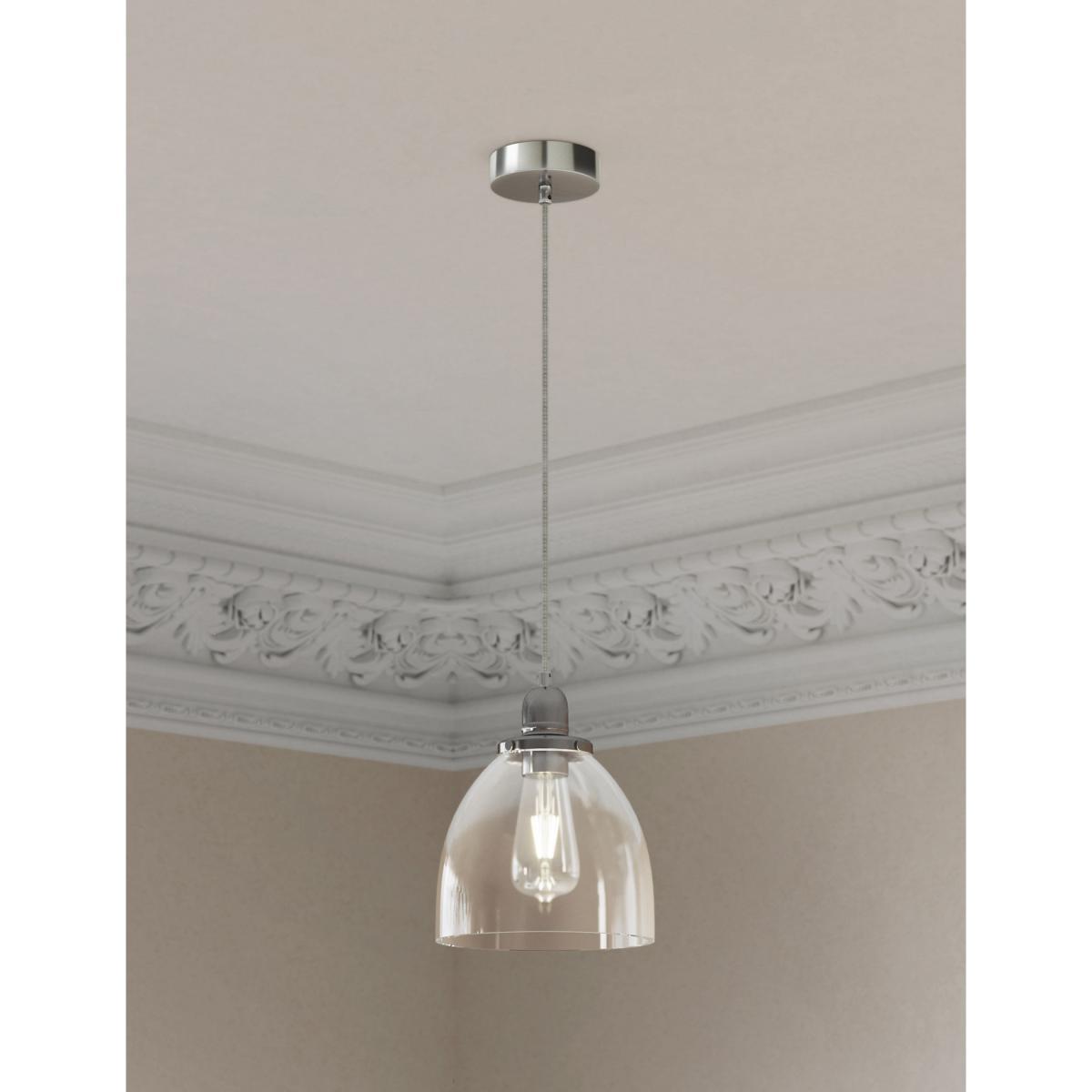 This Hoxton drop pendant light combines industrial components with a simple glass shade to create an unmistakably modern look. A threaded fabric cable creates a refined feel and complements your design vision.