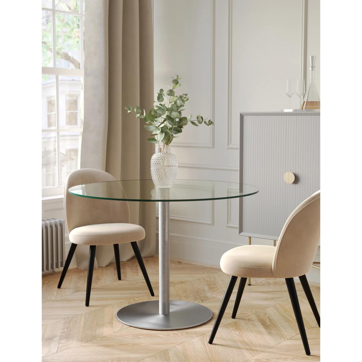 Choose the Huxley dining table to complete your interior with a modern touch. This pedestal design features a stainless steel brushed base and a glass top for contemporary appeal. It has a rounded shape, making it great for smaller spaces, and can seat four people. We’re so confident our furniture is built to last, our industry-leading guarantee covers any manufacturing failure on all furniture. That’s our promise, and why our furniture comes with a 10-year guarantee that you can trust. Excludes: outdoor furniture and any issues that are a result of normal wear and tear, improper care or accidental damage.