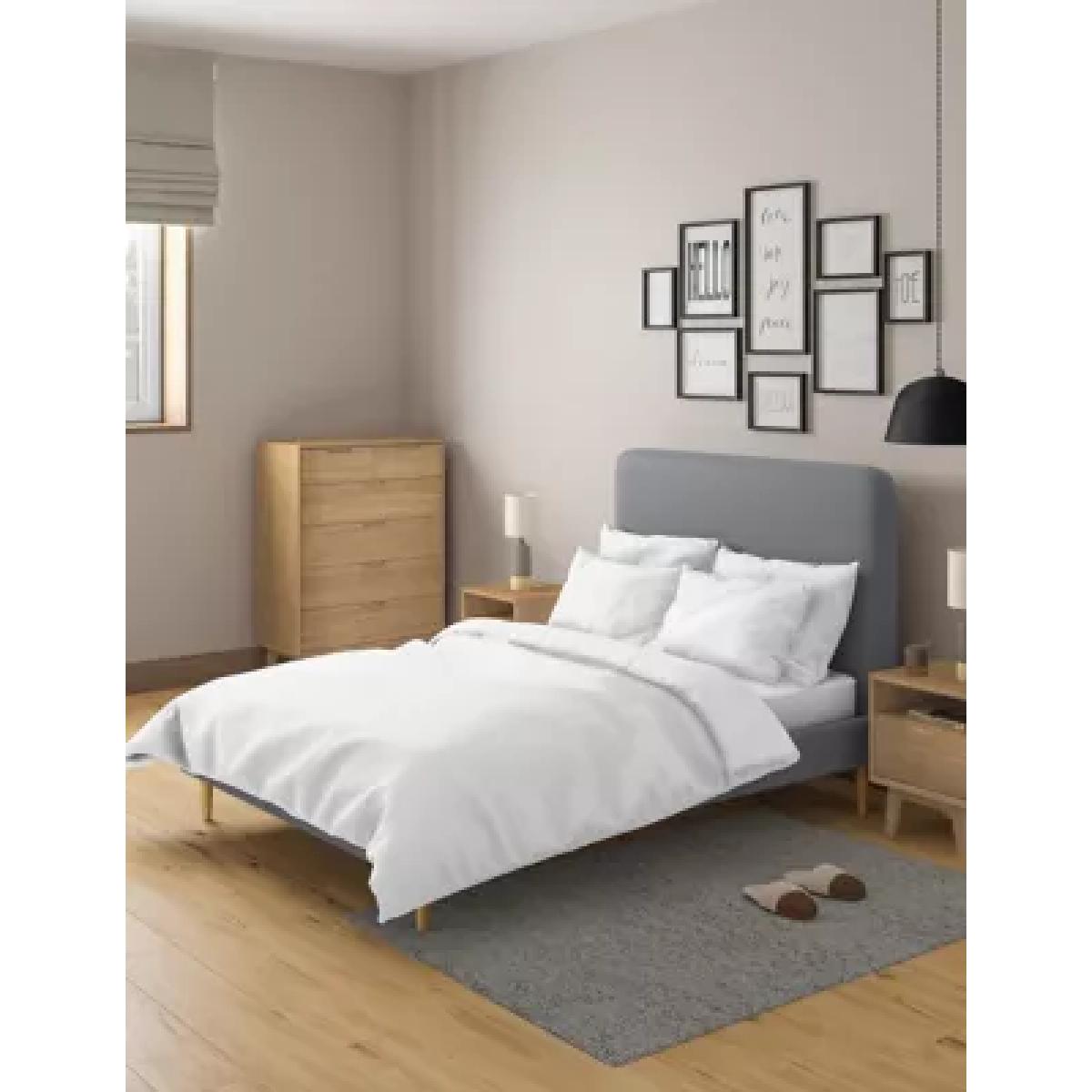 I love this bed frame for its clean and modern look, making it versatile across various interior styles-from contemporary to Scandi-inspired schemes. Its grey upholstery adds a soft, neutral tone that pairs well with both muted palettes and bolder accents. It’s practical too - the low profile keeps the room feeling spacious, and it can be styled effortlessly with cosy bedding or layered throws for a relaxed vibe. For styling tips, consider adding textured cushions or a statement bedside lamp to create visual interest. Pairing it with light wood or minimal furniture can enhance its sleek aesthetic, making it a stylish yet functional focal point in the bedroom.