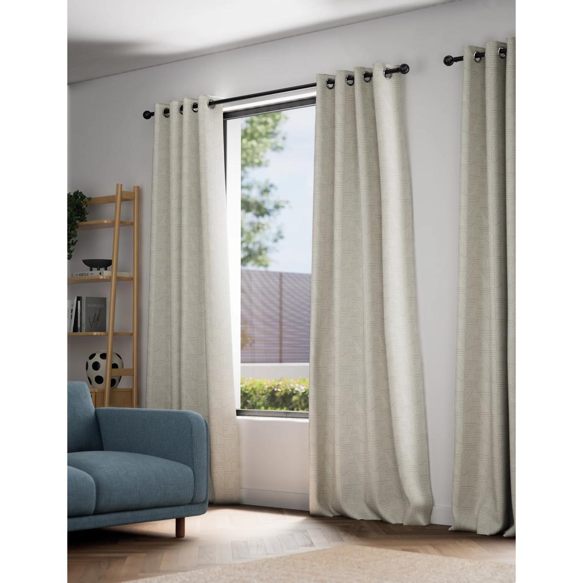These curtains are a versatile choice with their neutral tones and subtle striped jacquard pattern, making them a great addition to both modern and traditional interiors. I love how the eyelet style offers a clean, contemporary finish that is easy to hang and maintain, while the mix of neutrals and navy provides flexibility to pair with various colour schemes. They work particularly well in living rooms or bedrooms where you want a polished look without overpowering the space. For styling tips, consider pairing them with minimalist furniture and soft textiles for a calming vibe, or add a pop of colour through cushions or accessories to create a layered look. Their neutral palette ensures they’ll remain stylish regardless of changing decor trends.