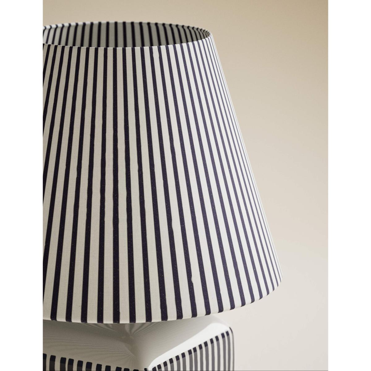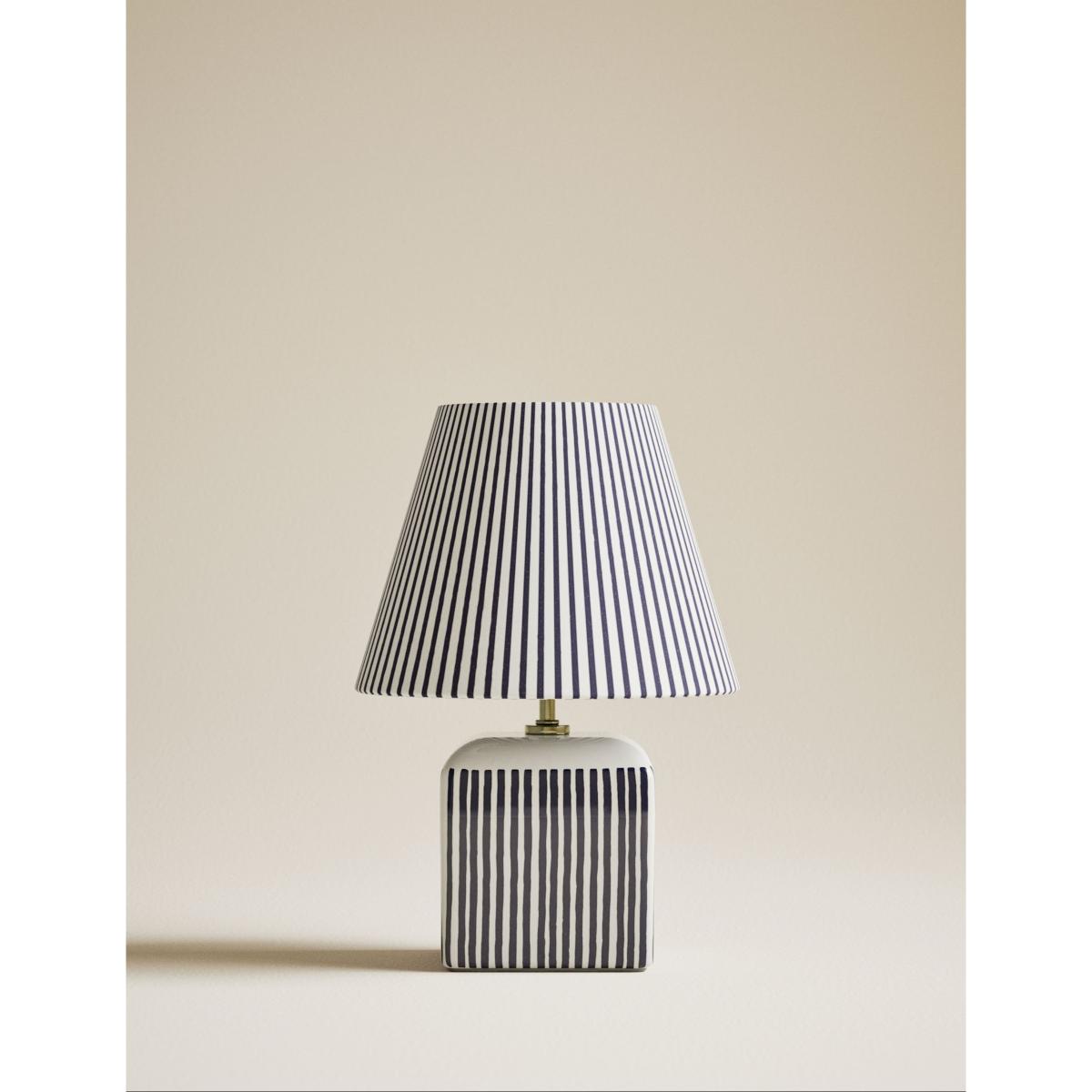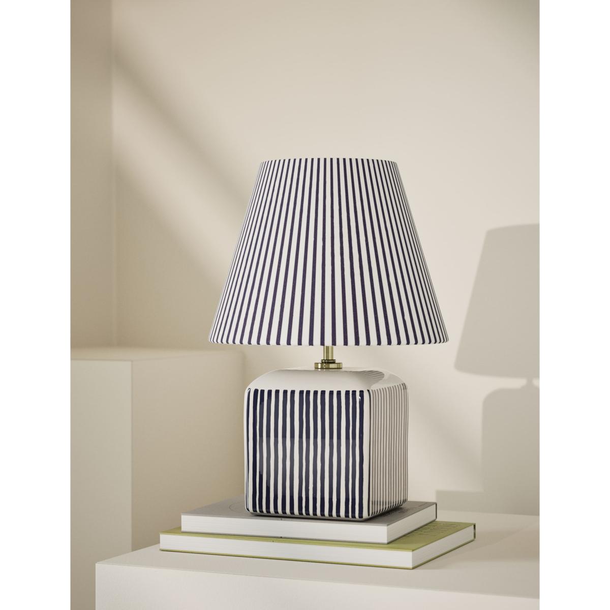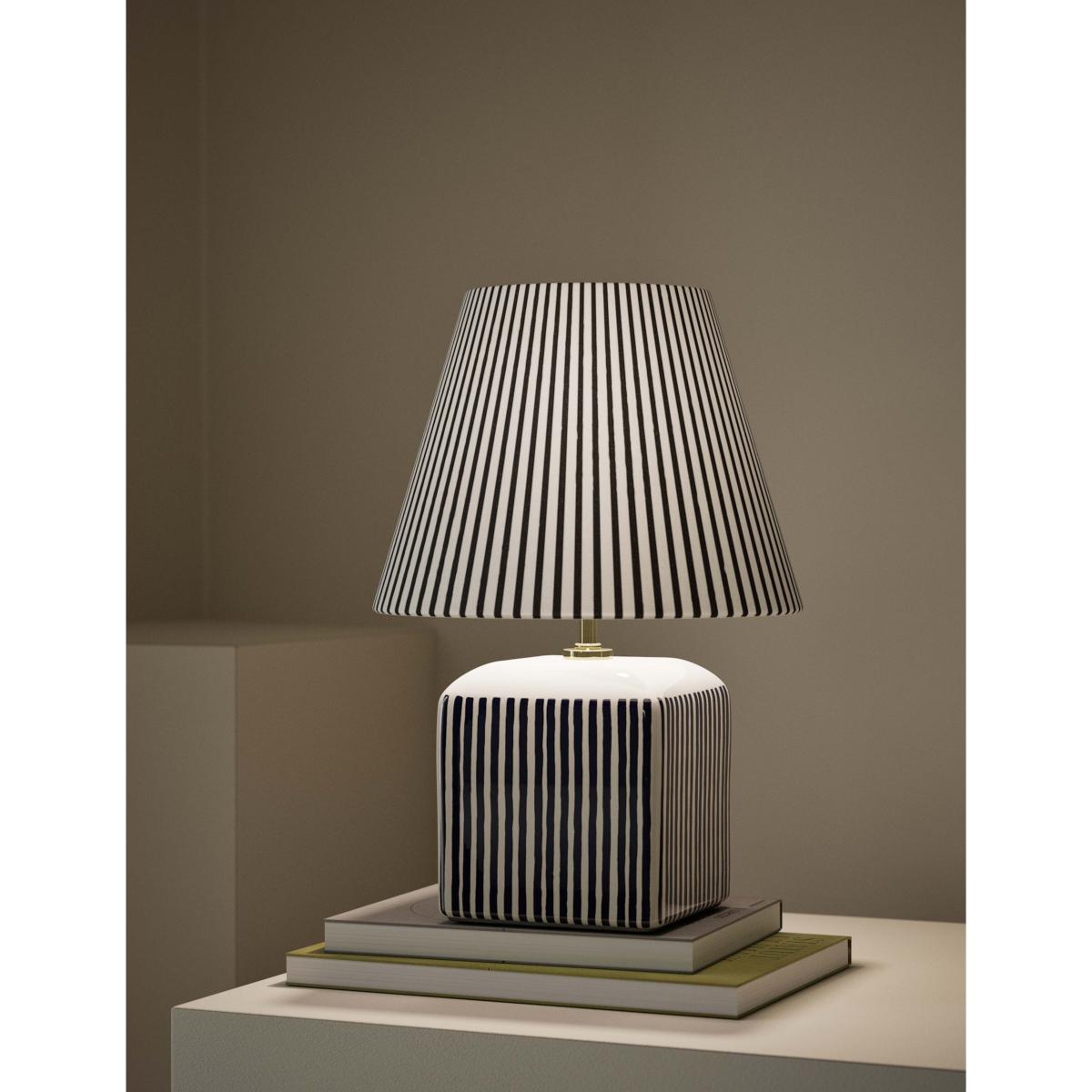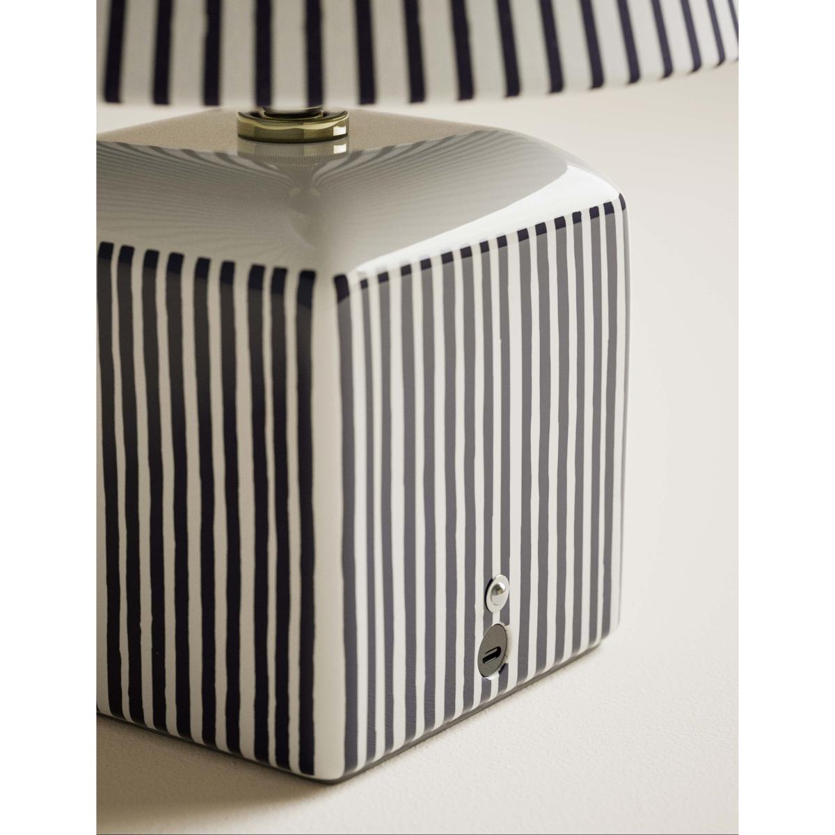 Our Joshua table lamp is portable, so you can get the lighting just right wherever you are. This rechargeable style features a pattern of vertical stripes from the square ceramic base to the classic empire shade, for a bold aesthetic. It has 3 light settings, so you can choose the brightness to suit your mood. Simply touch to choose.