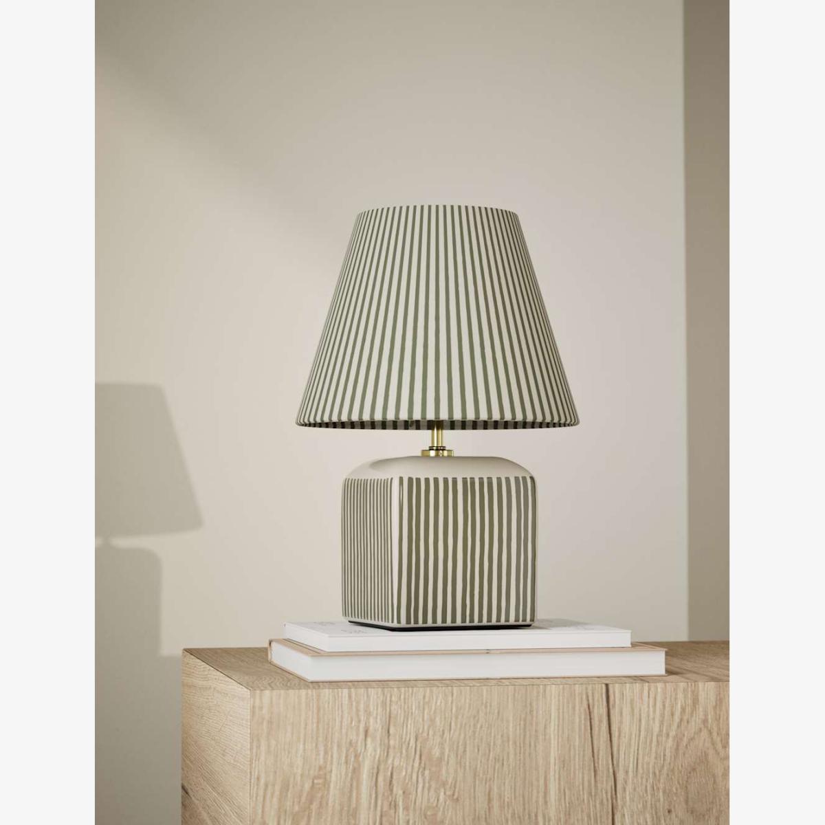 M&S Joshua Ceramic Striped Rechargeable Table Lamp Green