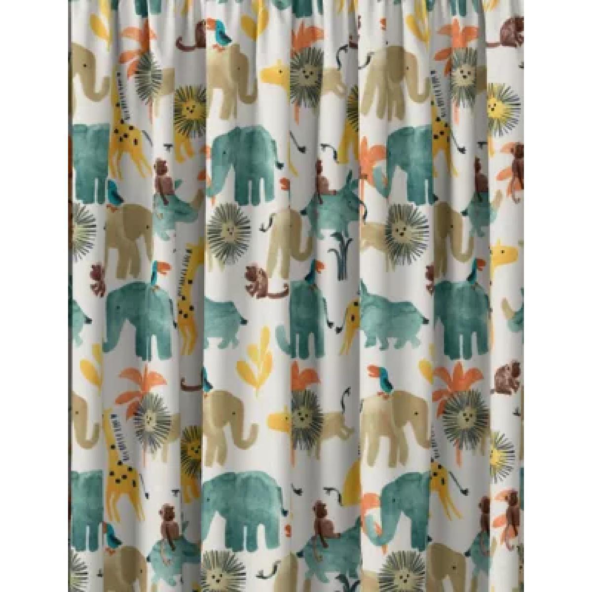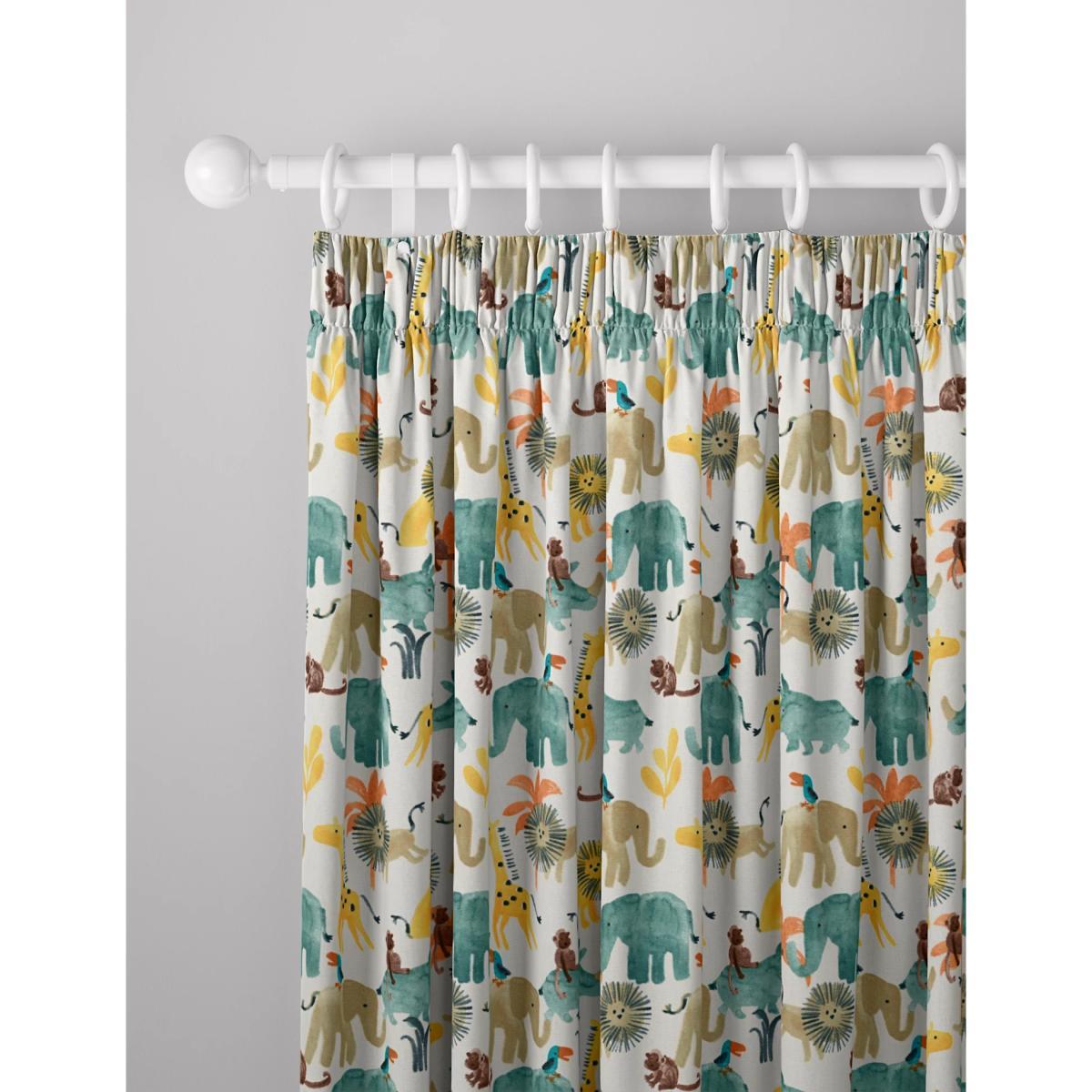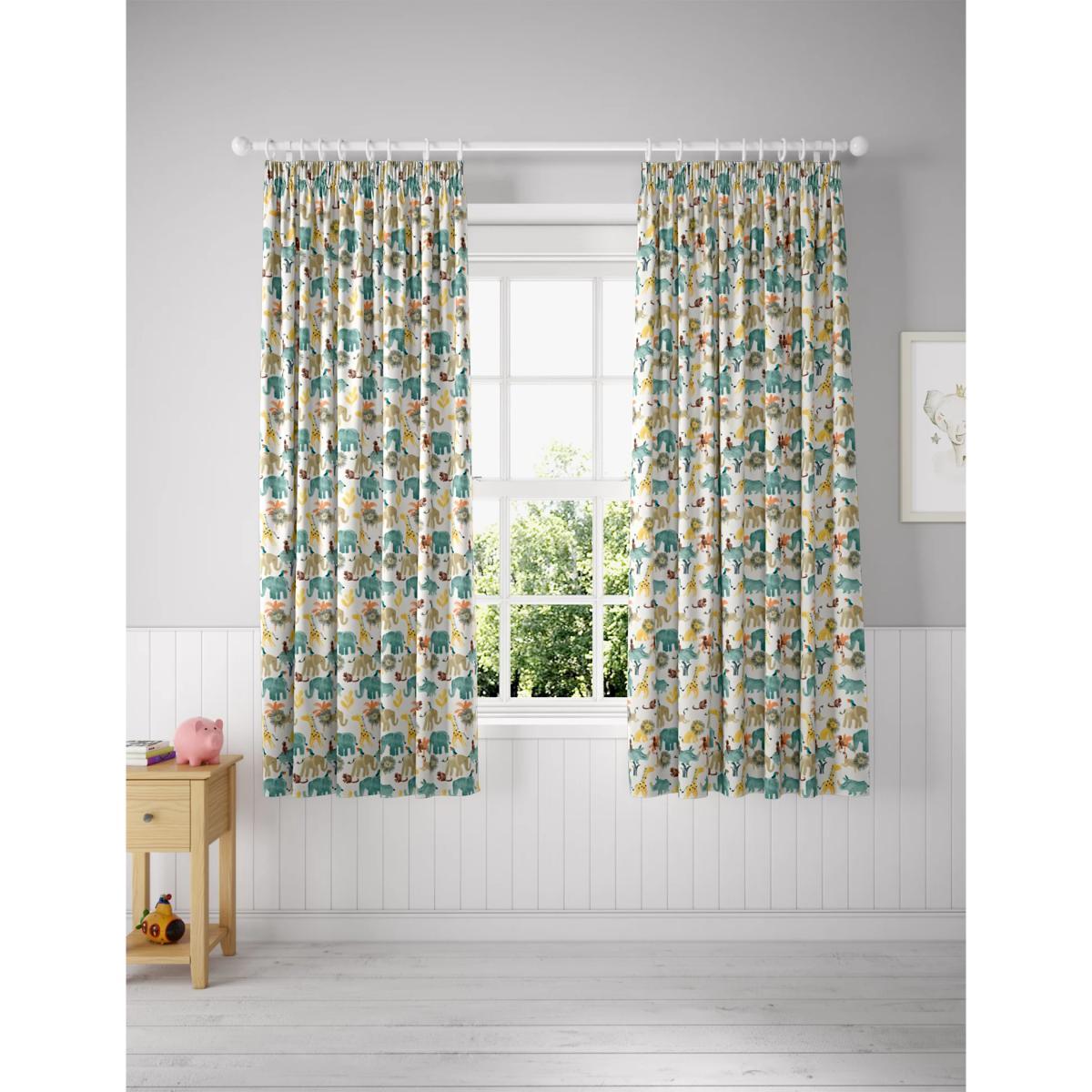 Add some fun to your interior decor with these jungle print curtains. The watercolour artwork features a mix of cute exotic animals while the pencil pleat style brings a traditional touch. The cotton-rich blackout fabric gives them a quality feel and ensures light from outside won't disturb. Ideal for kids' bedrooms.