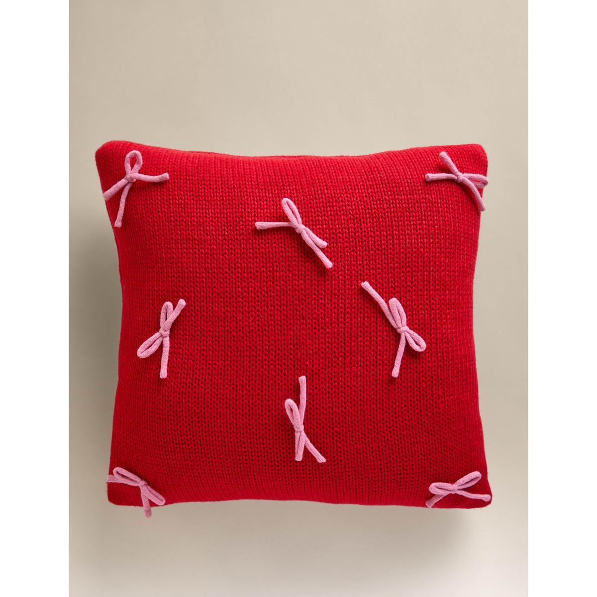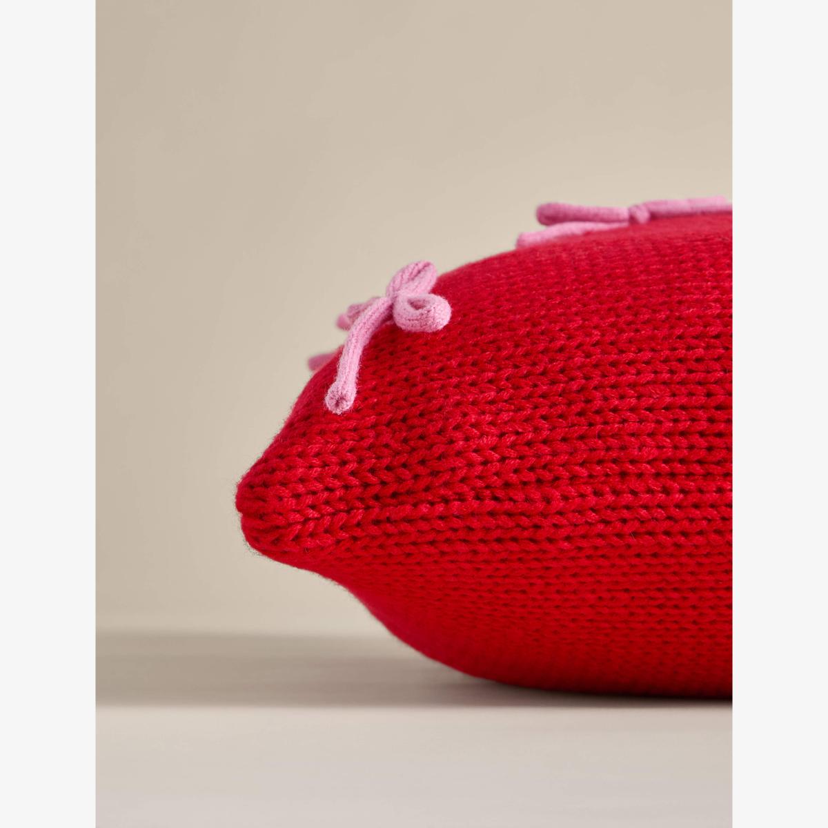 This cushion is embellished with playful bows, giving it a decorative edge that stands out on any sofa or bed. Its soft knitted texture makes it both comfortable to relax with and eye-catching to display.