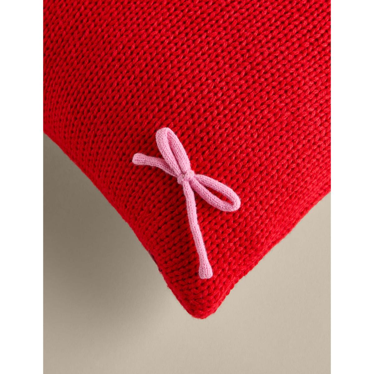 This knitted bow cushion in red mix is a great way to add a pop of colour and texture to a living space or bedroom. I love its playful yet cosy look, making it versatile for both contemporary and more traditional interiors. It works especially well styled with neutral sofas or beds, where it can serve as a statement piece, or mixed with other cushions for a layered, relaxed vibe. Practical styling tips include pairing it with soft fabrics and natural textures for a cosy feel or using it as a bold accent in minimalist settings. Its simple design combined with the vibrant colour makes it a charming and functional addition to any seating area.