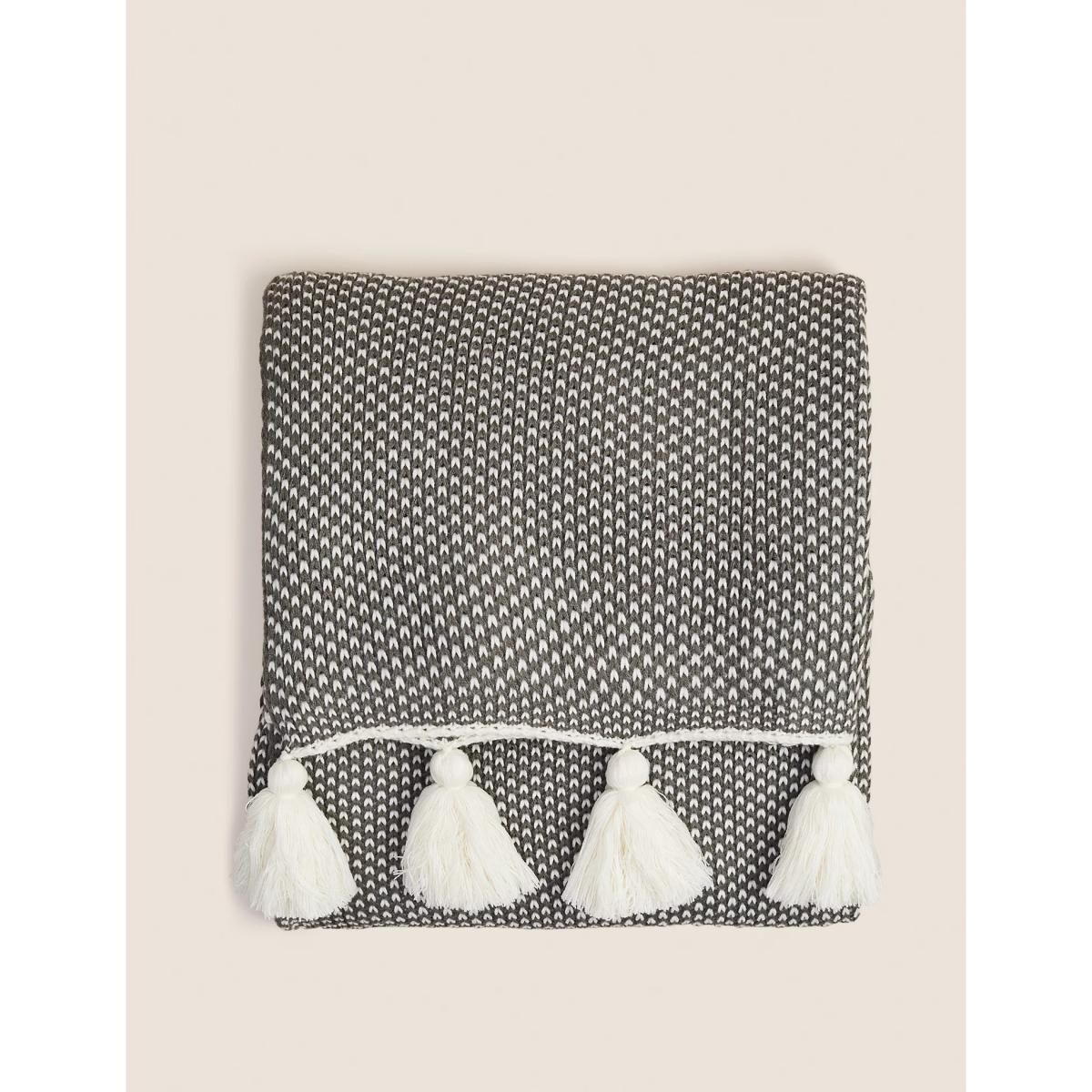 M&S Knitted Tassel Throw - Grey Mix, Grey Mix