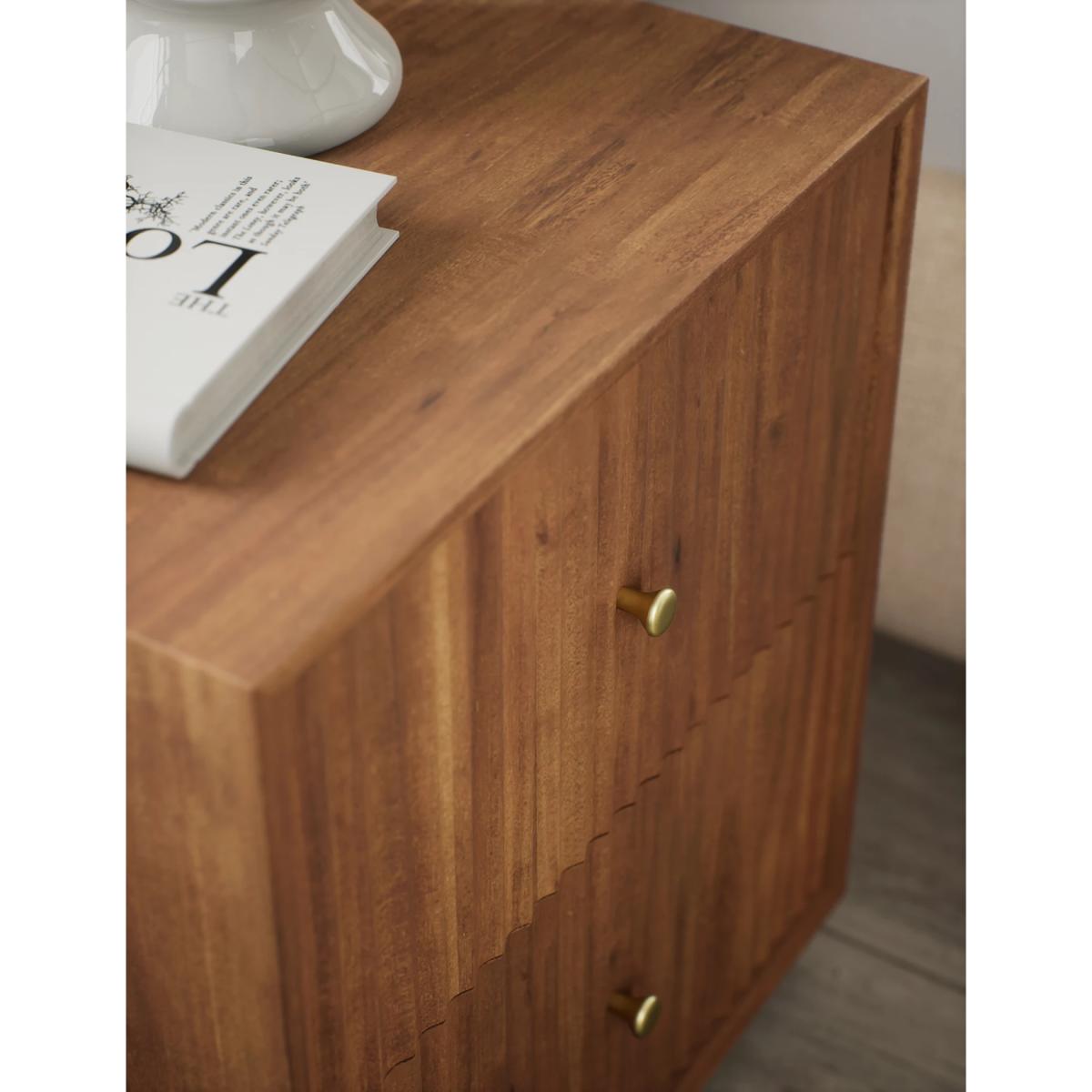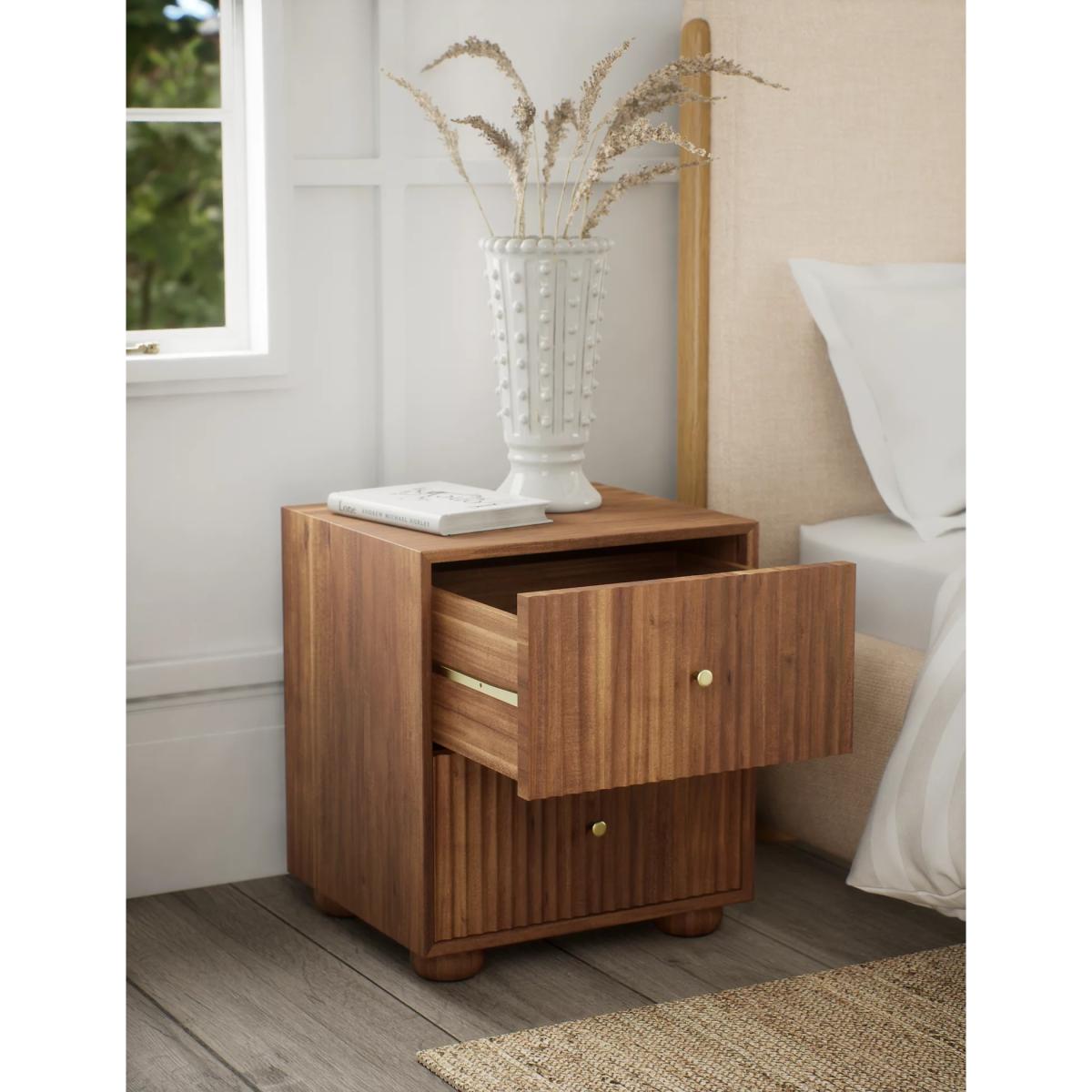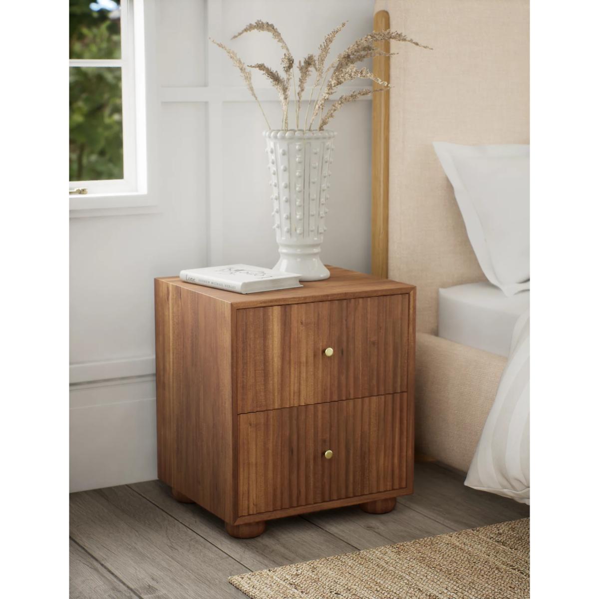 With its distinctive fluted front, the Langham bedside table brings textural interest to your interior. This contemporary piece of furniture sits slightly off the floor on rounded feet, and features two drawers for ample storage space. The brushed metal handles perfectly complement its polished wooden body, creating a sophisticated aesthetic. We’re so confident our furniture is built to last, our industry-leading guarantee covers any manufacturing failure on all furniture. That’s our promise, and why our furniture comes with a 10-year guarantee that you can trust. Excludes: outdoor furniture and any issues that are a result of normal wear and tear, improper care or accidental damage.