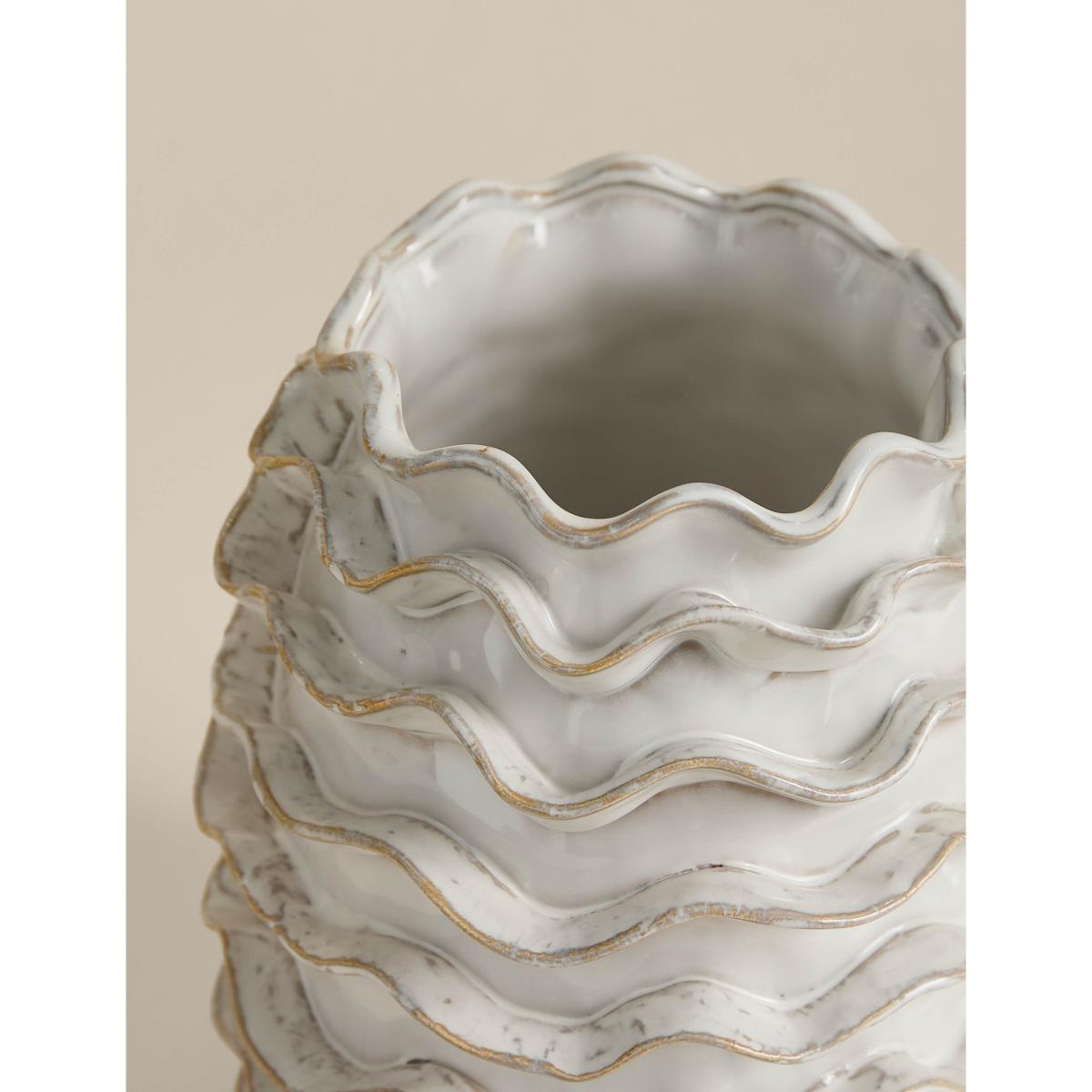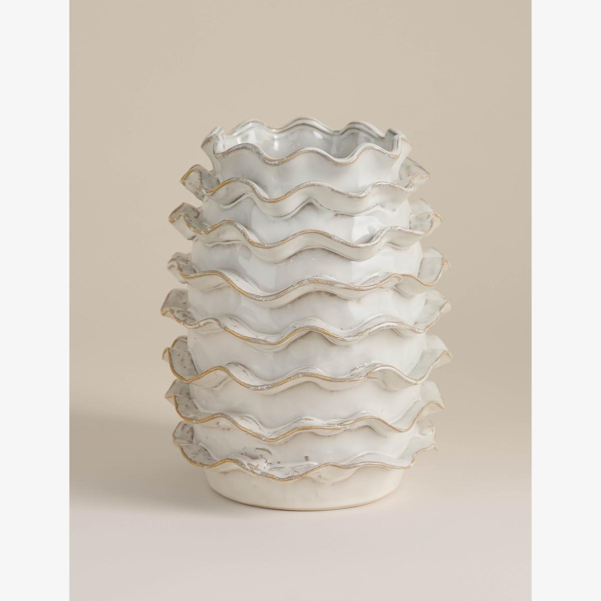 This large ceramic vase will make an eye-catching addition to your space. It has a striking design of tiered frills, with an organic finish that adds to its handmade look and feel.