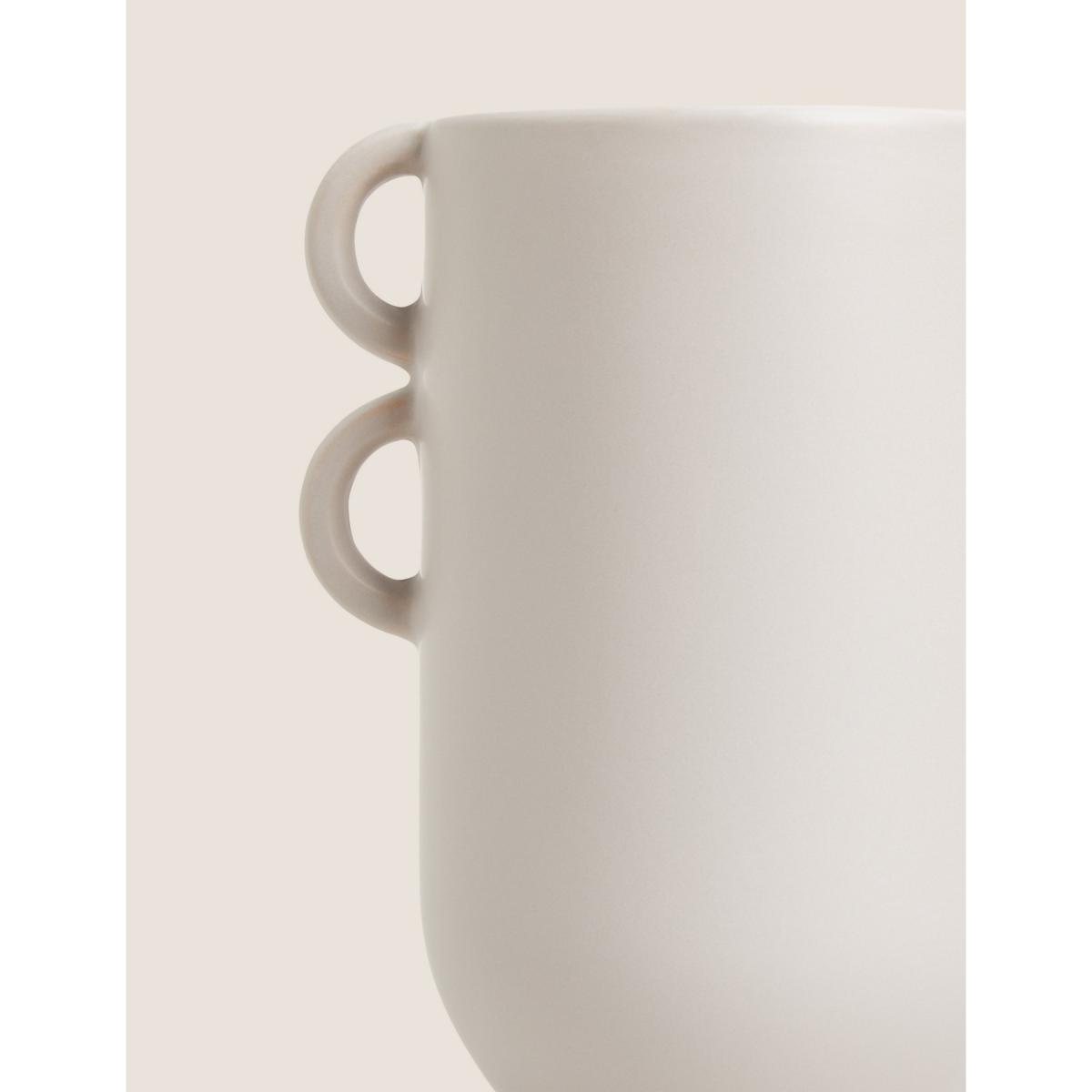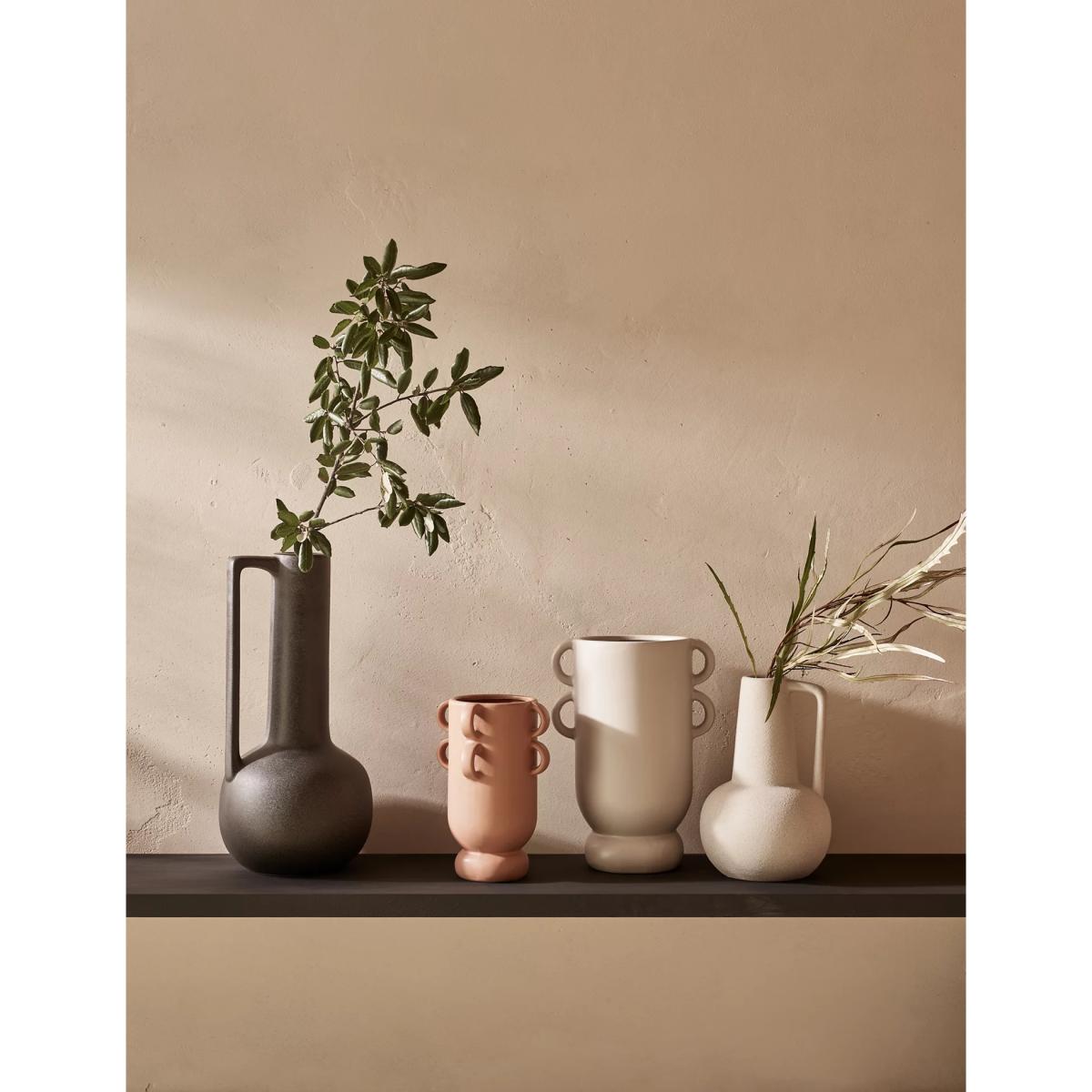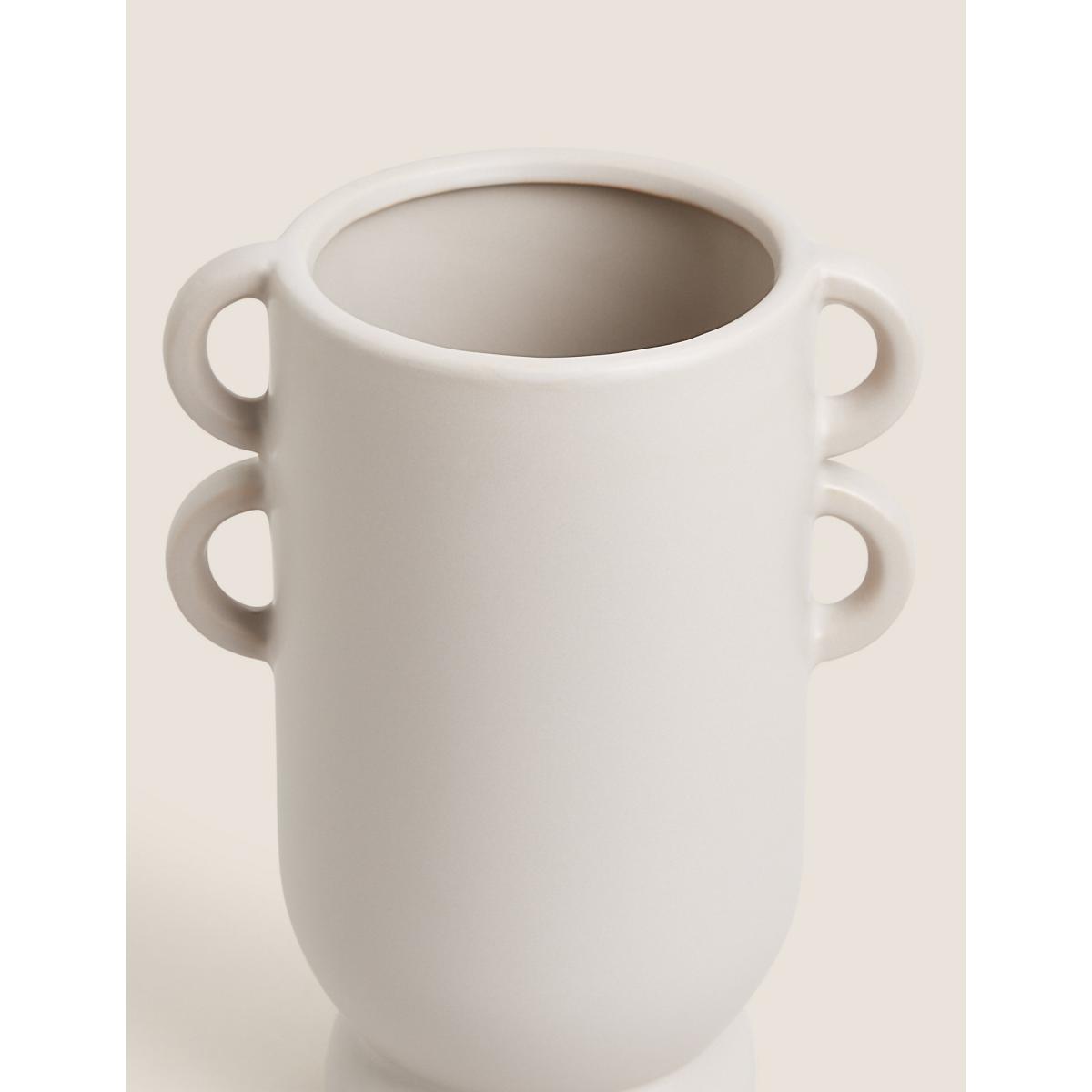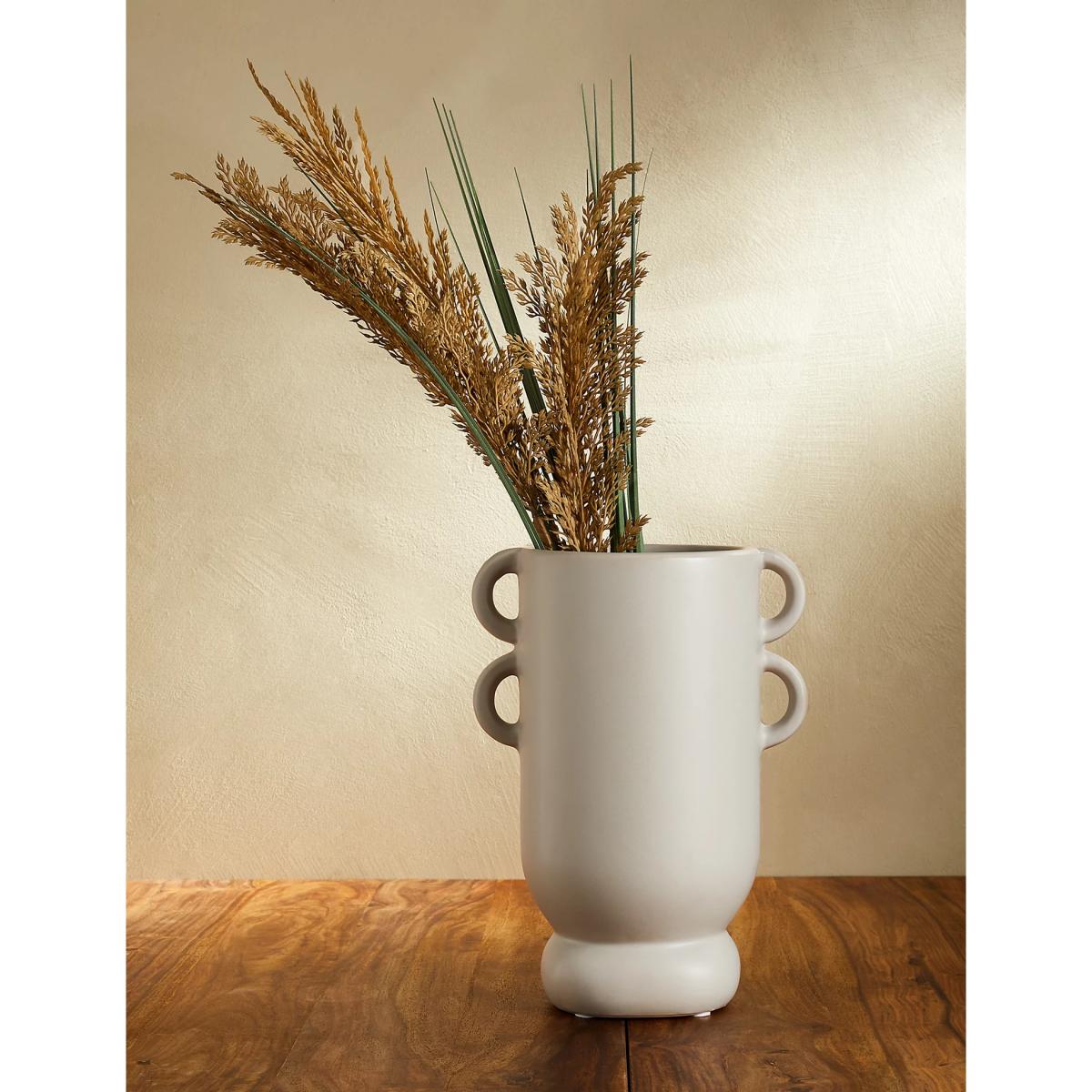 This large ceramic vase will bring a touch of elegance to any decor. The versatile design features two small handles on either side and is glazed for durability. It's equally suited to holding flowers or for displaying as a standalone piece.