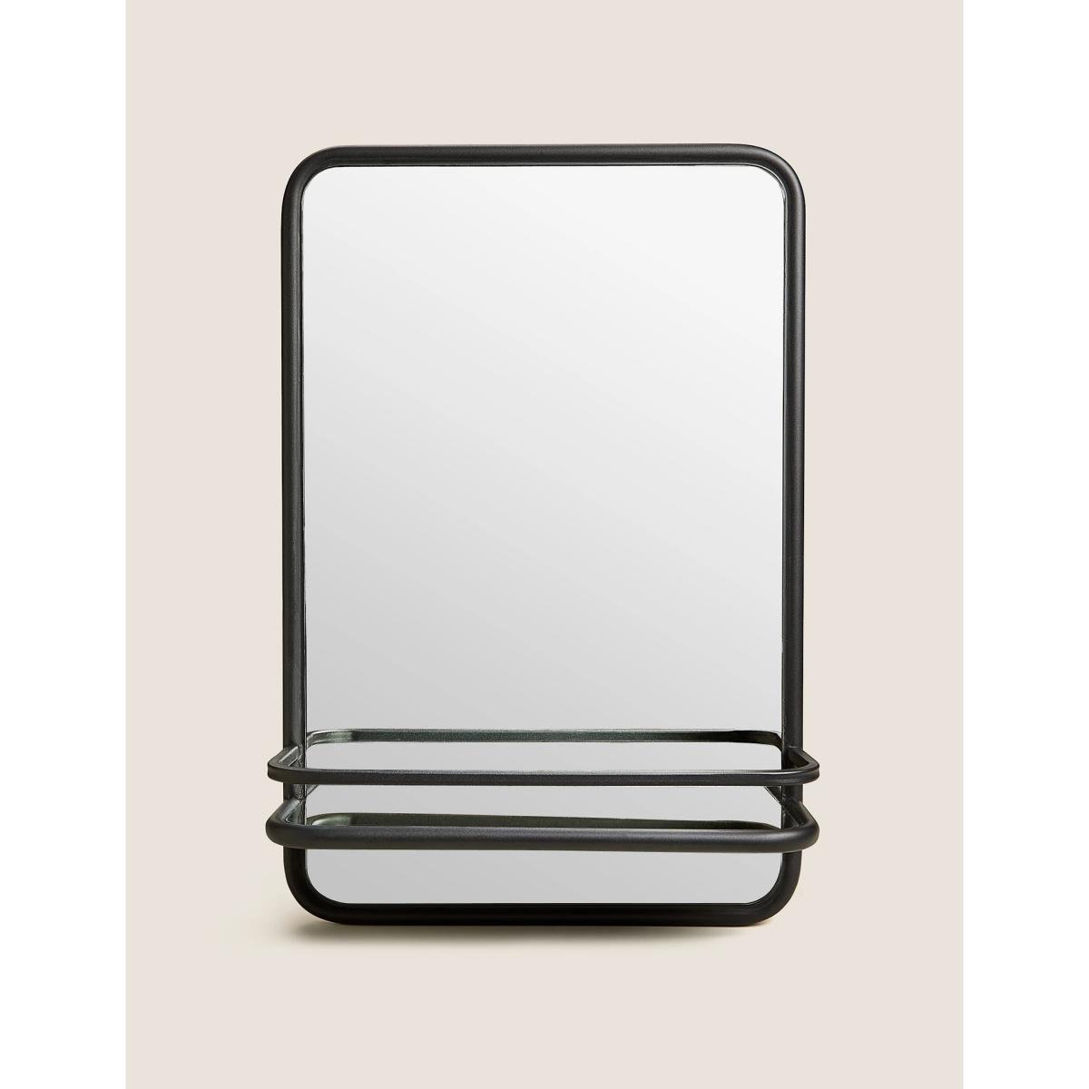 I love this mirror with shelf because of its sleek, contemporary design - the black finish makes it versatile enough to suit a variety of interiors, from minimalist to industrial styles. It’s a practical piece that works well in hallways, bathrooms, or bedroom vanities, providing both a reflective surface and convenient storage for everyday essentials. For styling, consider pairing it with matte black or metallic accessories on the shelf to create a cohesive look. It’s also worth layering with complementary lighting or placing decorative items like small plants or candles on the shelf to add personality and warmth. This piece offers a great blend of function and understated style, making it a smart choice for modern, streamlined interiors.