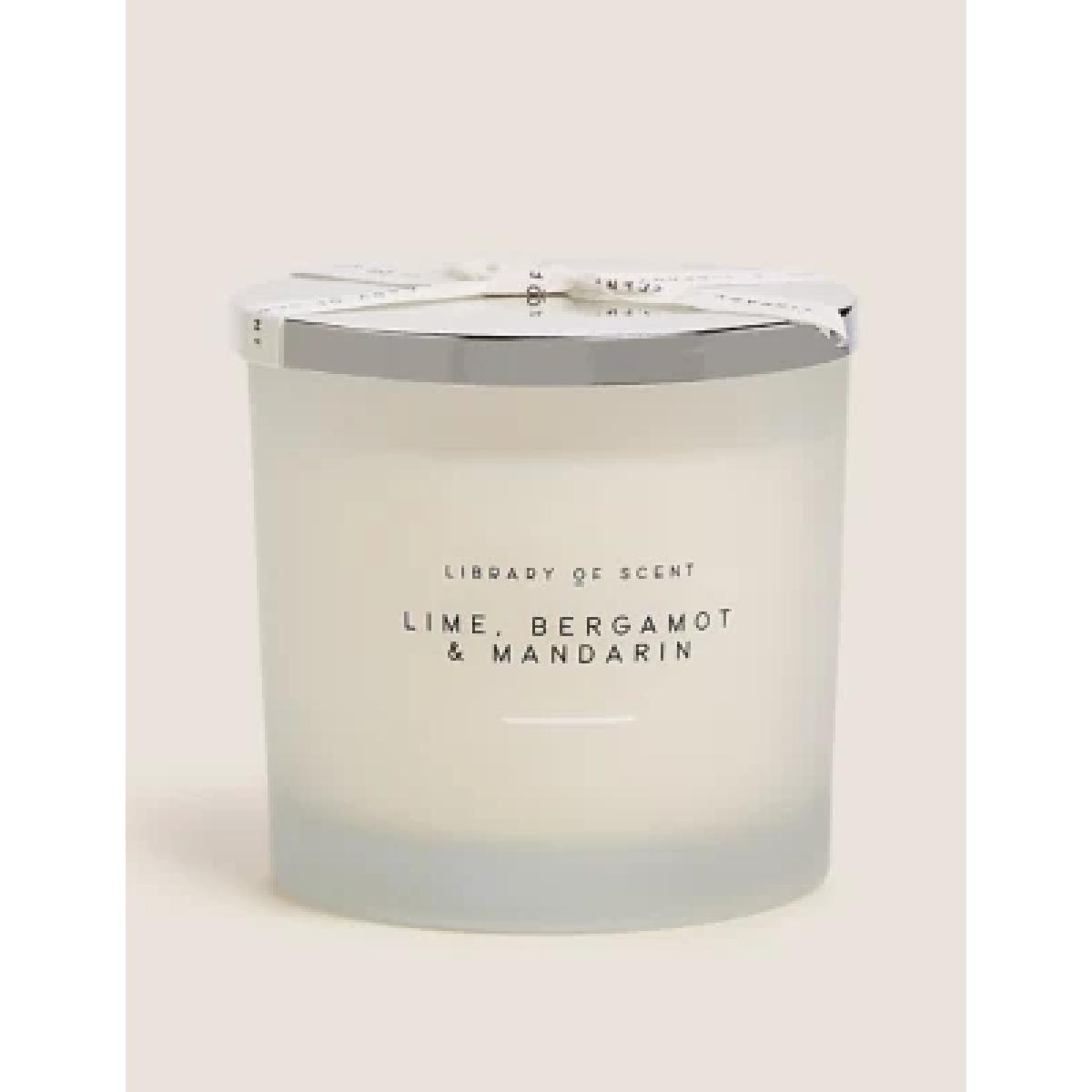M&S Library Of Scent Lime, Bergamot & Mandarin 3 Wick Candle - White Mix, White Mix