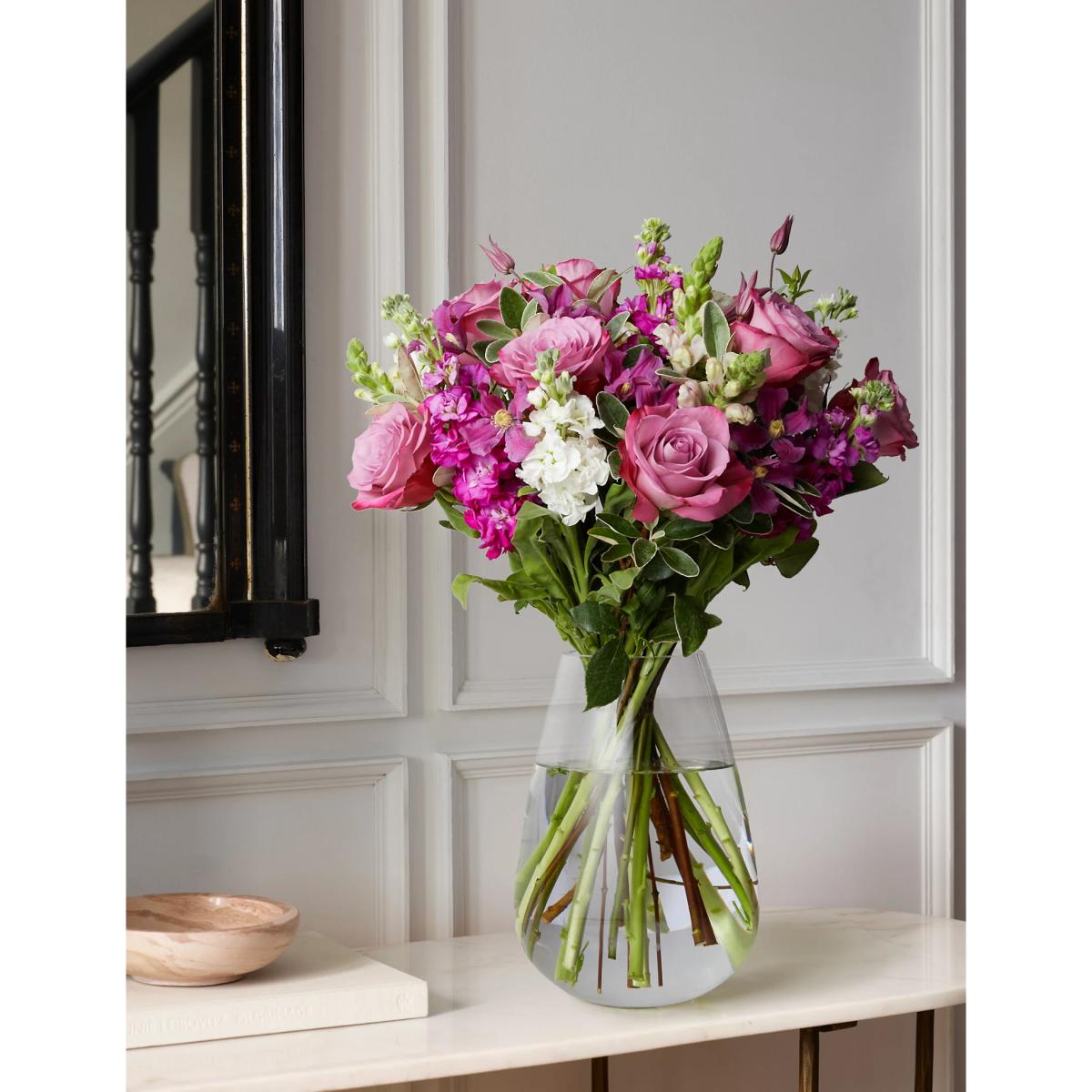 I love the Lilac Dreams bouquet for its vibrant colour and realistic appearance, making it a versatile option for decorative displays without the maintenance of fresh flowers. It works particularly well in contemporary and romantic interiors, adding a pop of colour to neutral or pastel palettes. For styling, consider placing it in a clear glass vase on a console table or mantelpiece to keep the look fresh and airy. To enhance its appeal, group it with other subtle textures or metallic accents for a modern touch, and position it where it can be easily appreciated, such as near seating areas or entry consoles. This artificial bouquet provides an easy way to bring colour and life to a space without the fuss of watering or replacing fresh flowers.