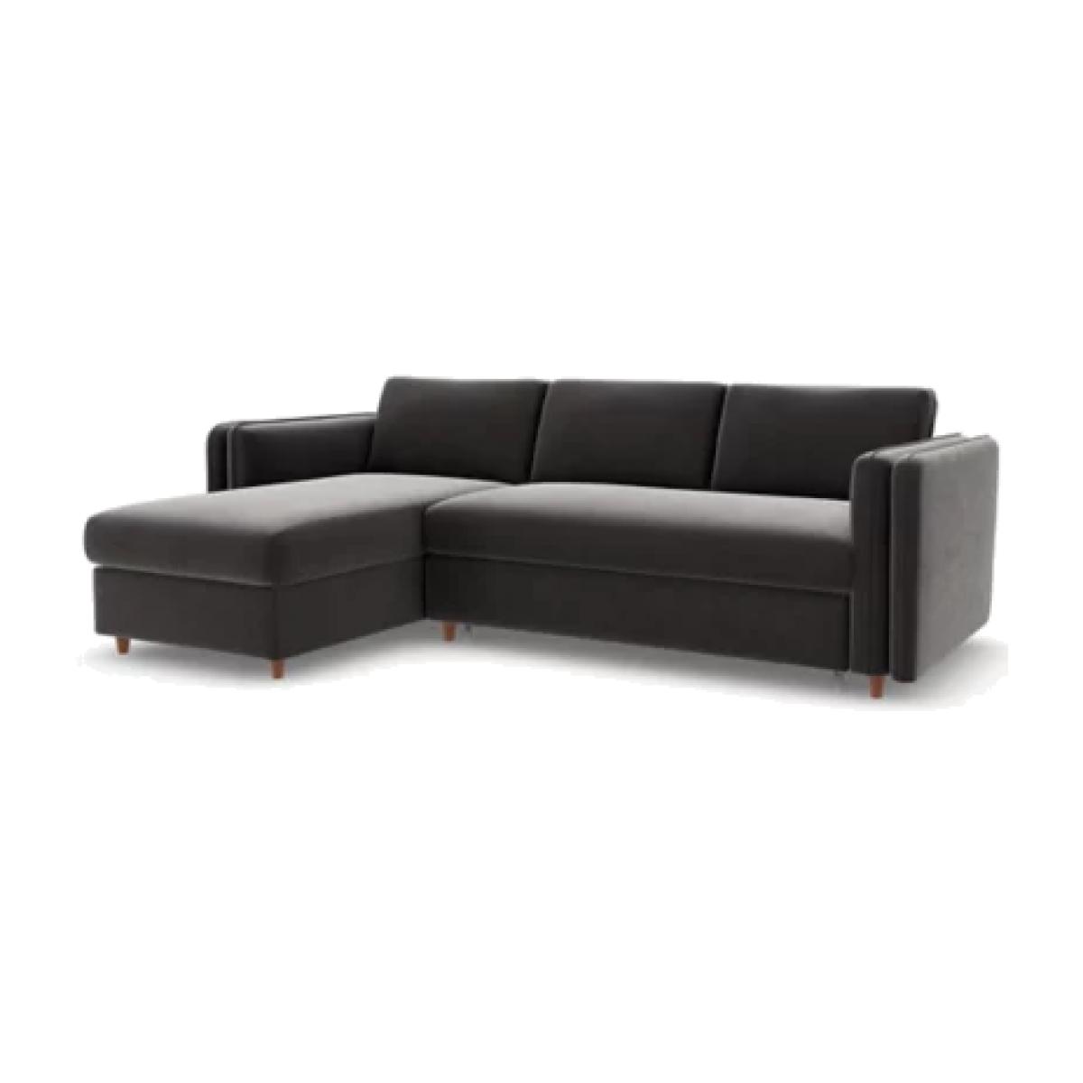 Get the best of both worlds with this Jayden piece – a sophisticated furniture design that combines a modern look with handy storage and a sofa bed. The stylish left-hand corner sofa, with clean lines and modern square arms, also features a luxurious long chaise for lounging. When it's time to host guests, simply unfold the seat to reveal a comfortable bed. Delivered to room of choice Partial assembly required