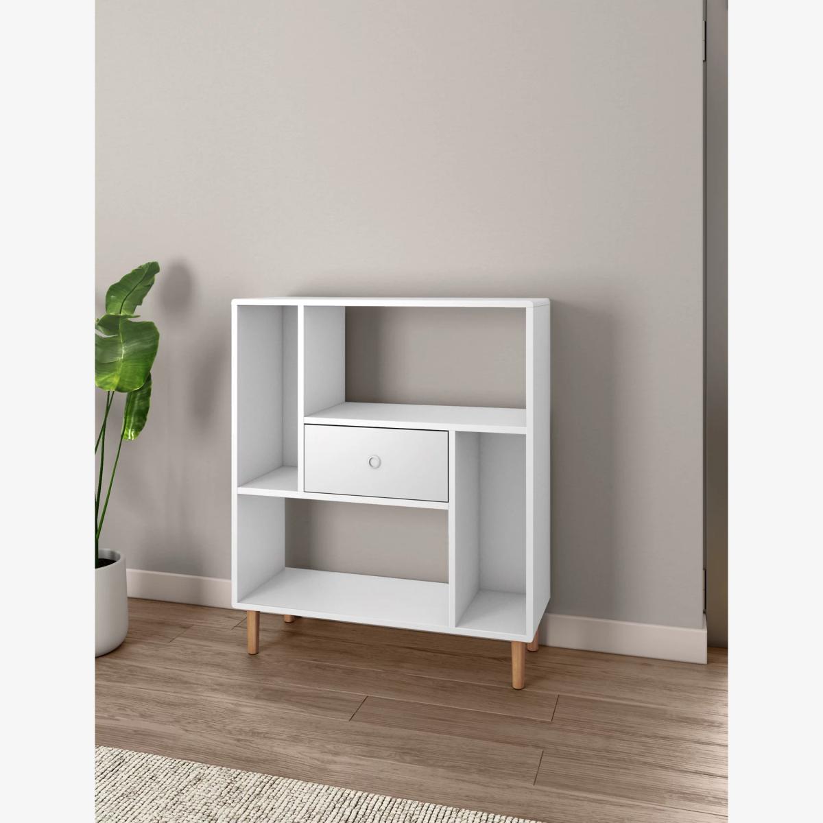 I love this little bookcase because of its clean, simple design and versatile size, making it ideal for a child’s room or nursery. Its white finish ensures it works well with various colour schemes, from pastel tones to more vibrant shades, and it adds a fresh, bright vibe to the space. The open shelving is perfect for displaying books, toys, or favourite characters, while the small drawer offers handy storage for smaller bits. Styling tip: add some soft textiles like a woven basket or a cosy rug nearby to create a warm, inviting corner. It’s great for modern interiors but also fits effortlessly into Scandinavian or minimal nursery schemes, providing practical storage without cluttering the room.