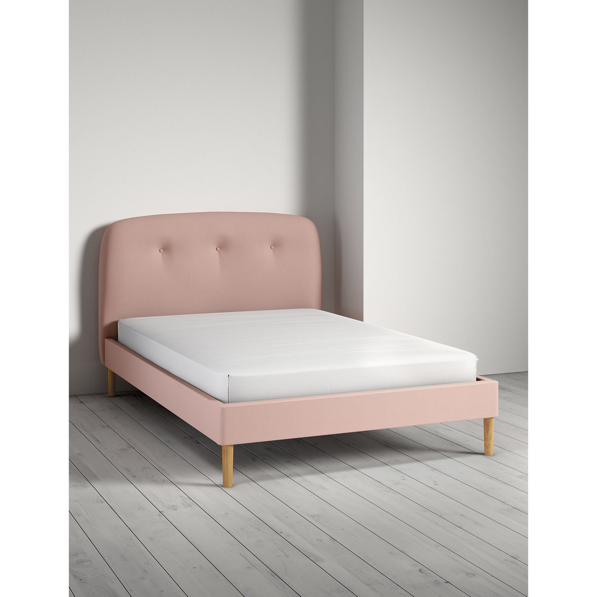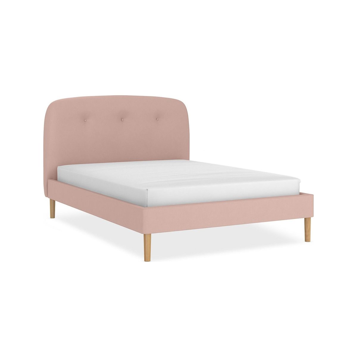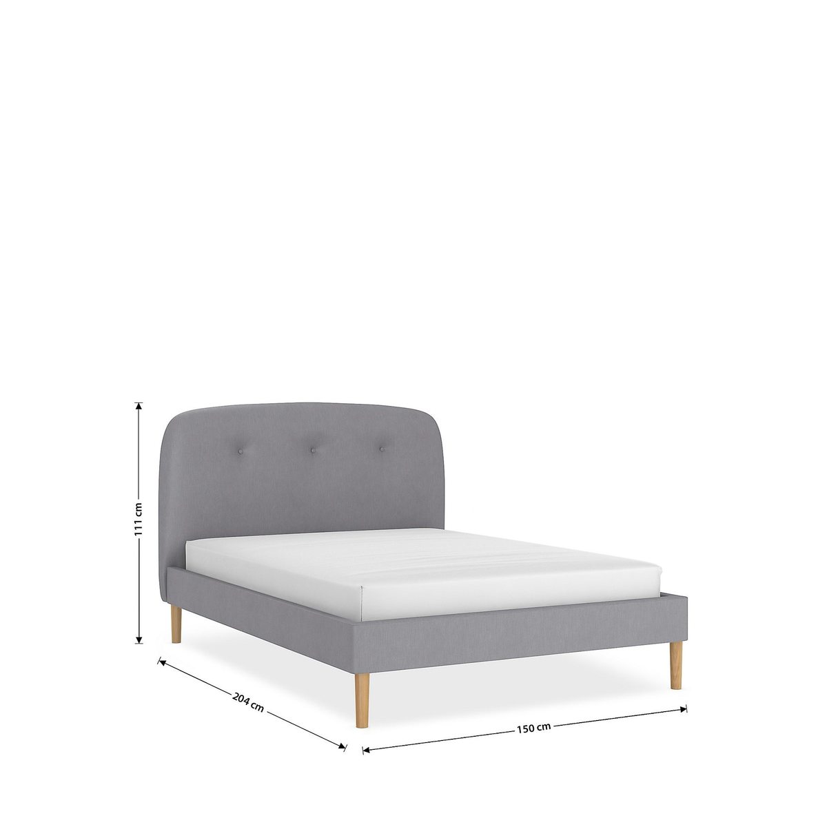 Featuring a curved, three button headend this modest bedstead will add a touch of modern sophistication to your bedroom. Round effect legs and sprung slats for additional mattress support.