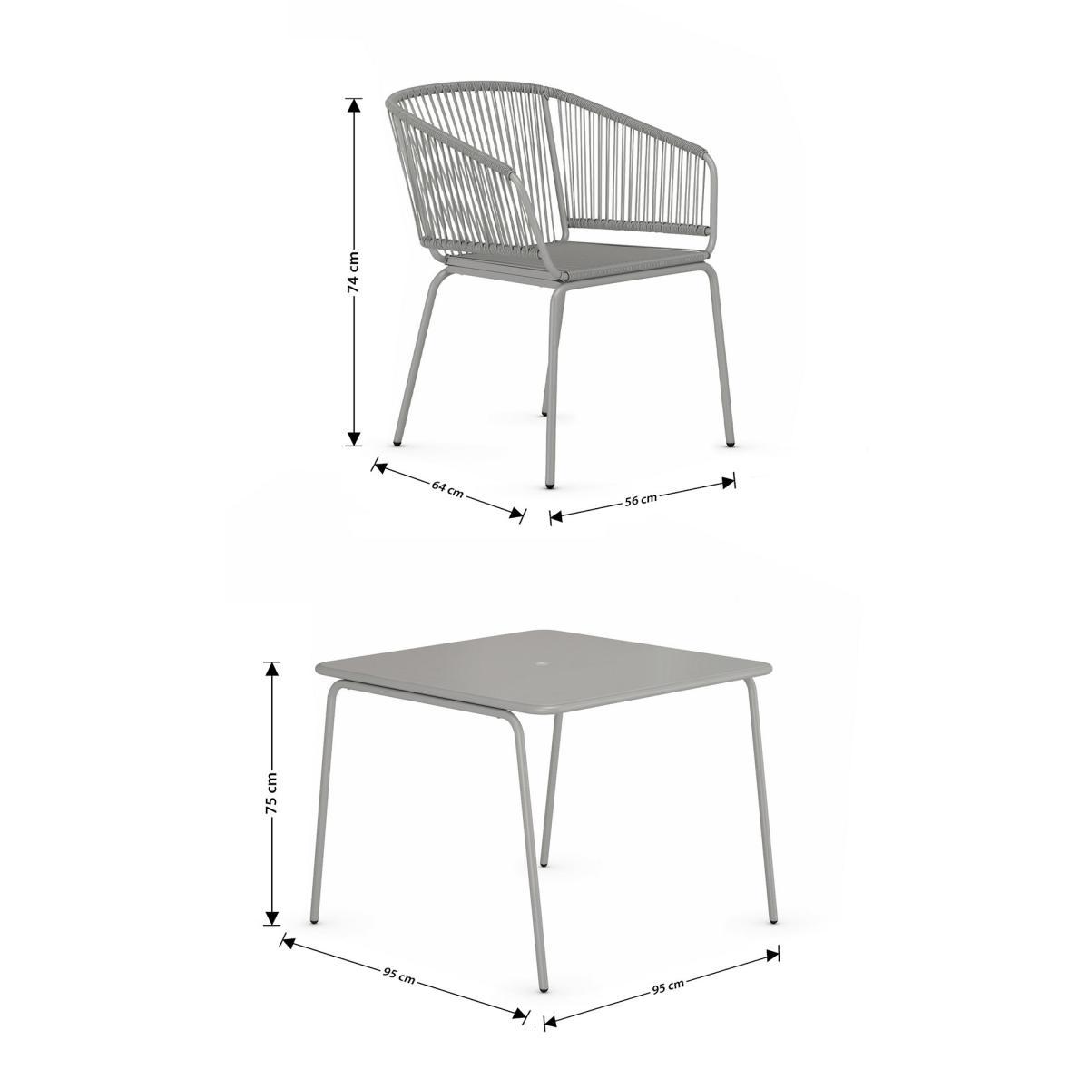 Create a relaxing outdoor dining space with our Lois table and chairs. This stylish set includes a table and four curved matching chairs. A powder coating adds a protective finish to this metallic design.